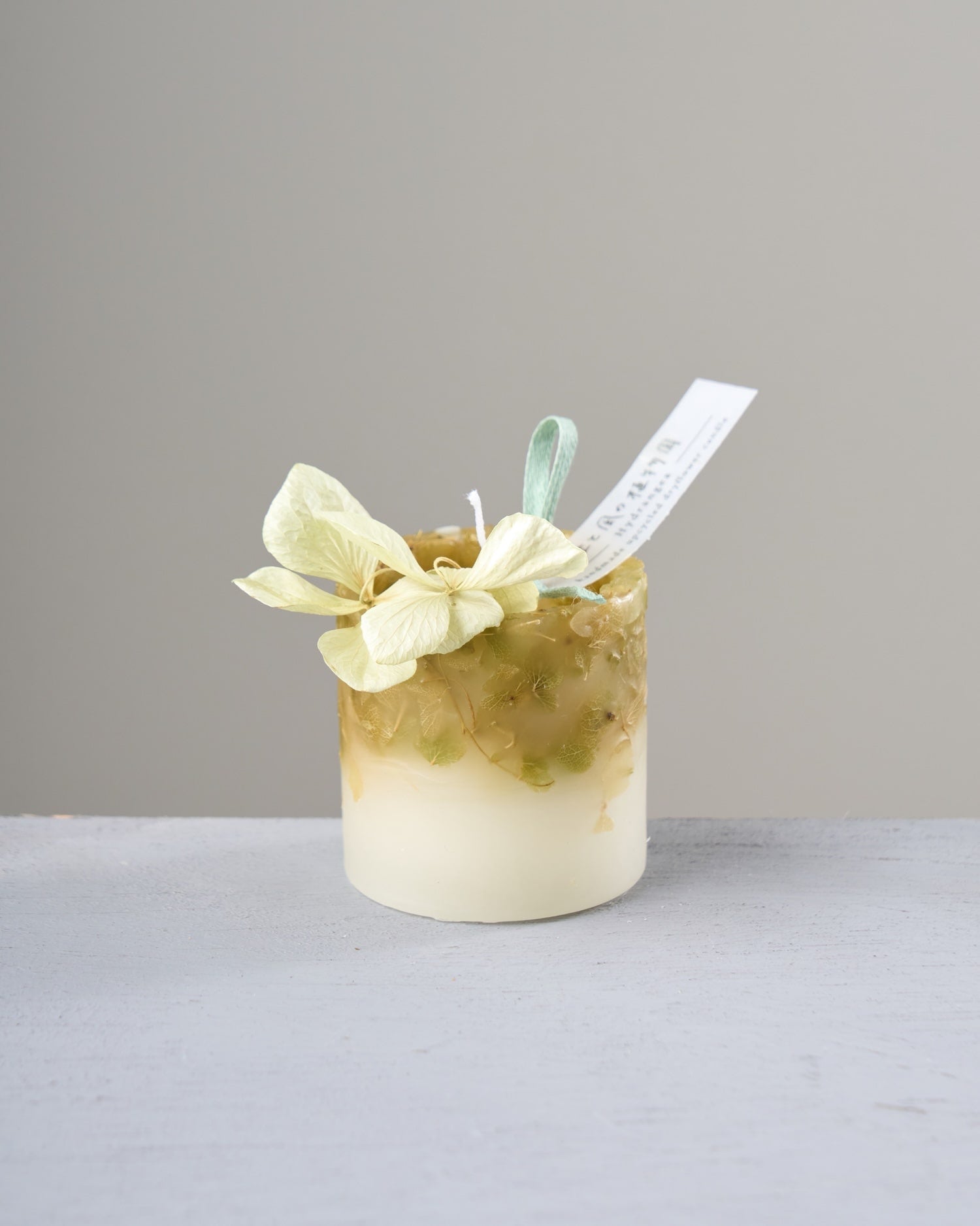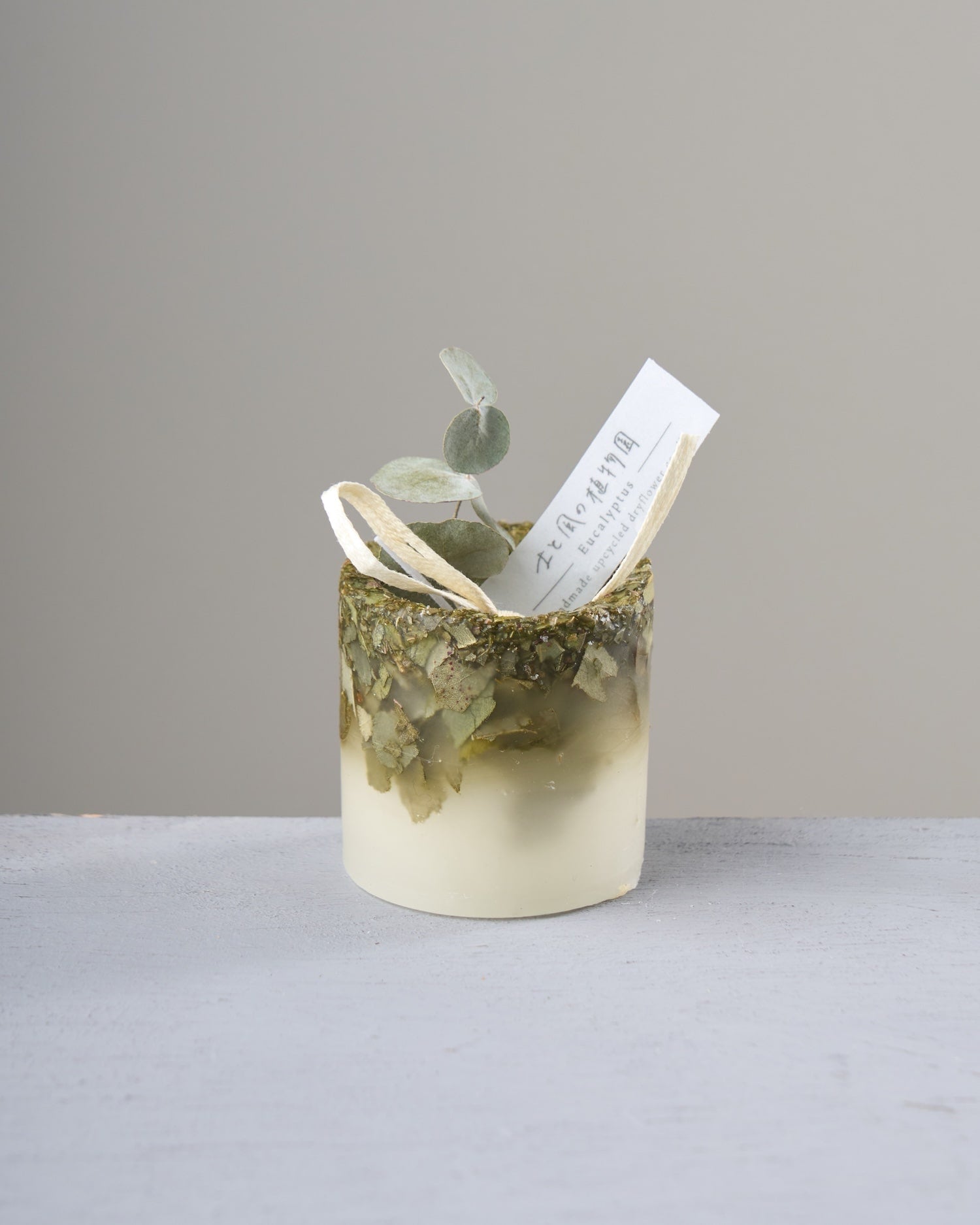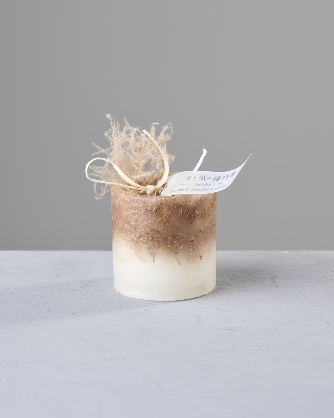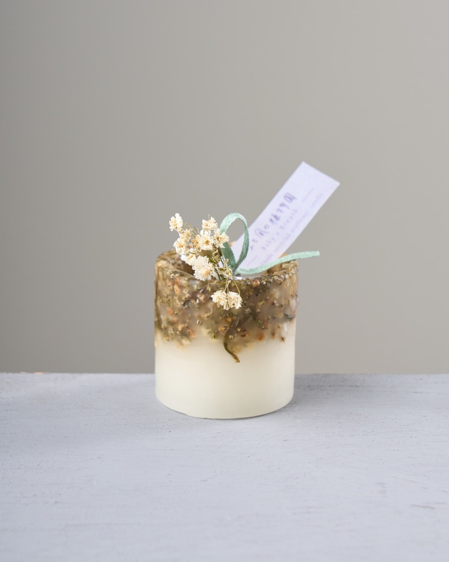 ドライフラワーのカケラをぎゅっと凝縮した、植物標本のようなミニキャンドルです。