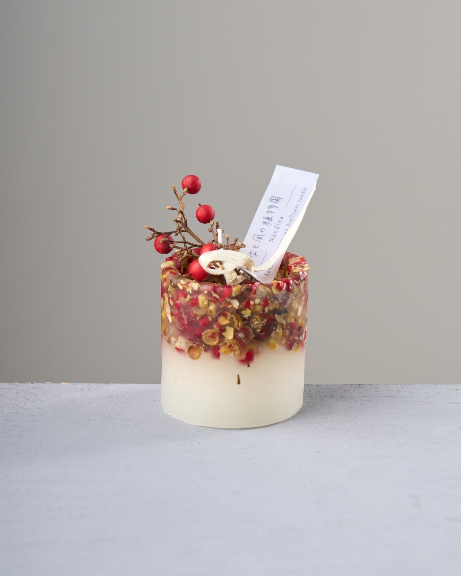 南天は実落ちしやすい植物ですが、置くだけのキャンドルなら、その心配もなく飾れますよ。