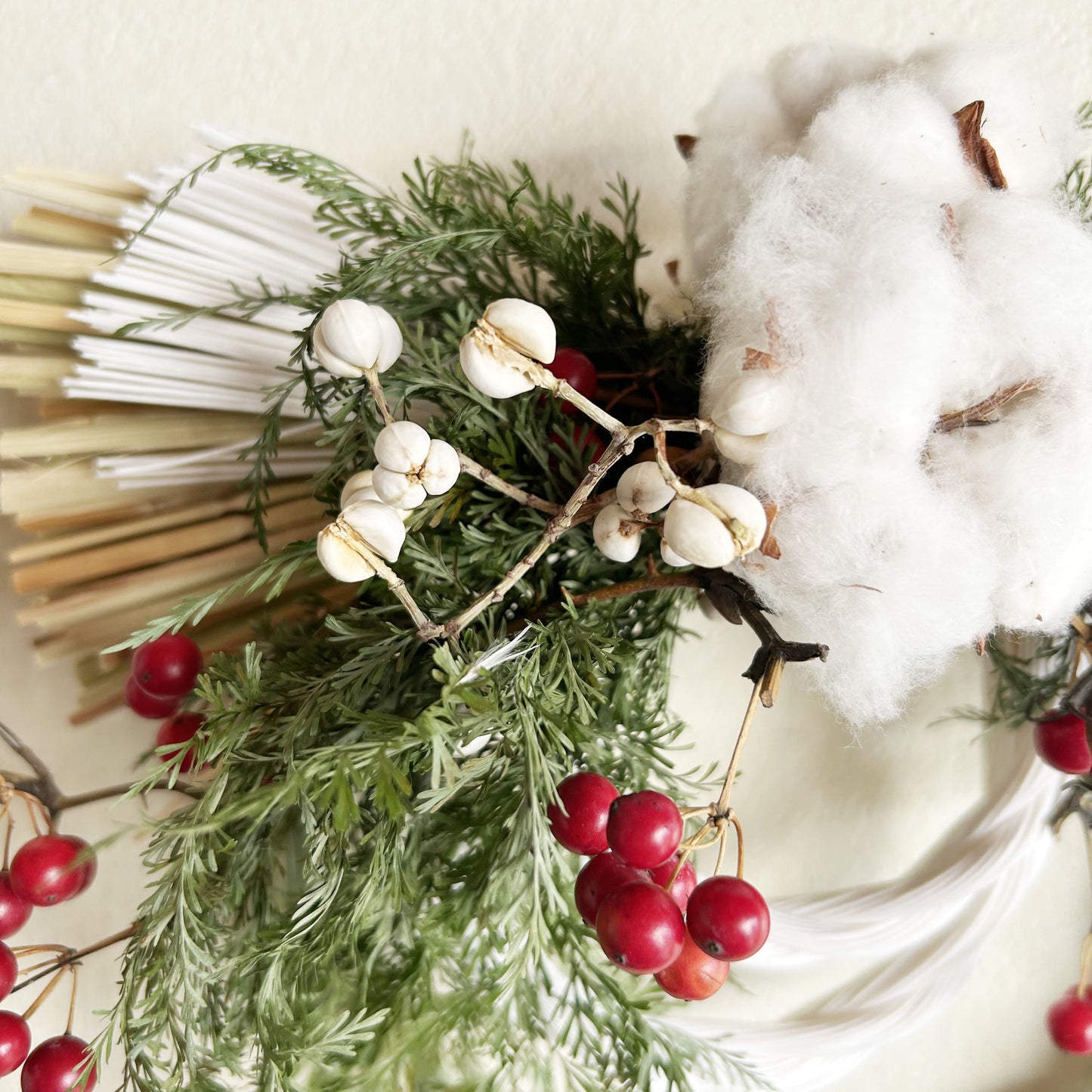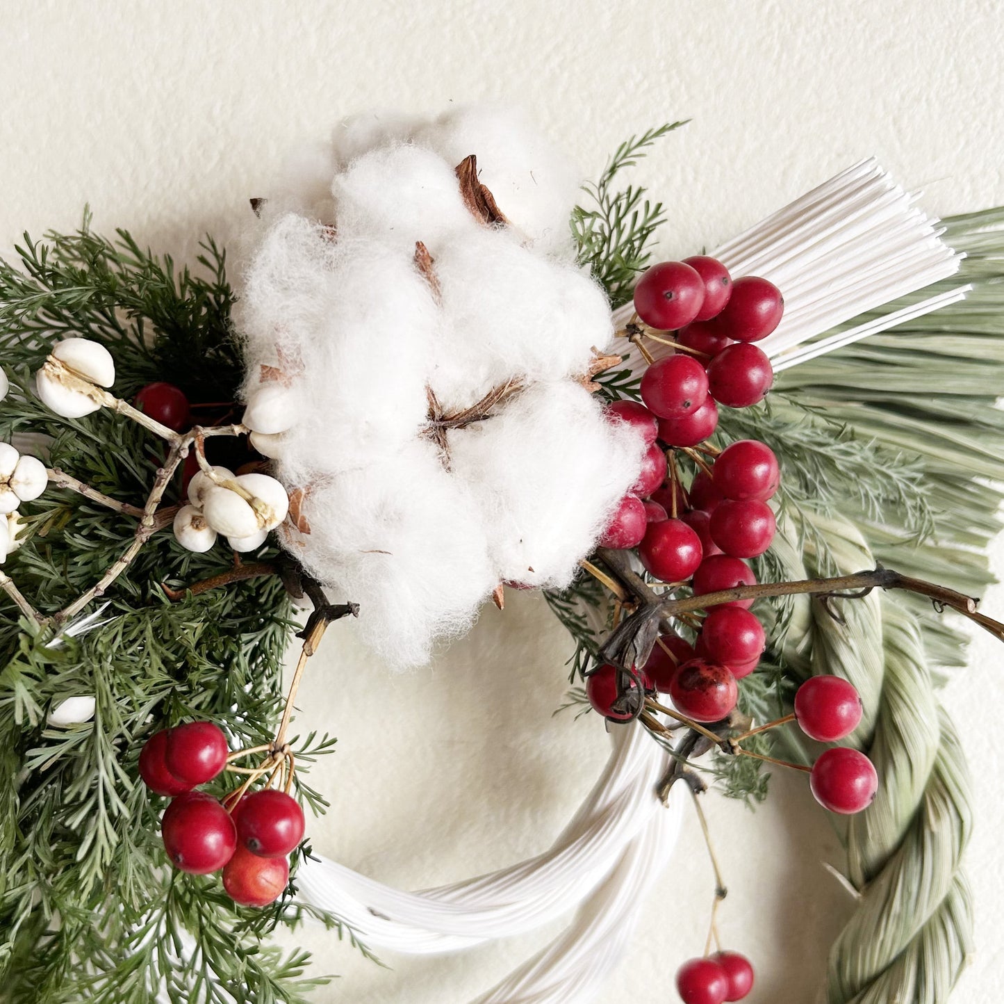 サンキライとコットン、水引をあしらったお正月飾りです。5点のみの限定販売です。