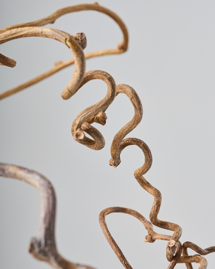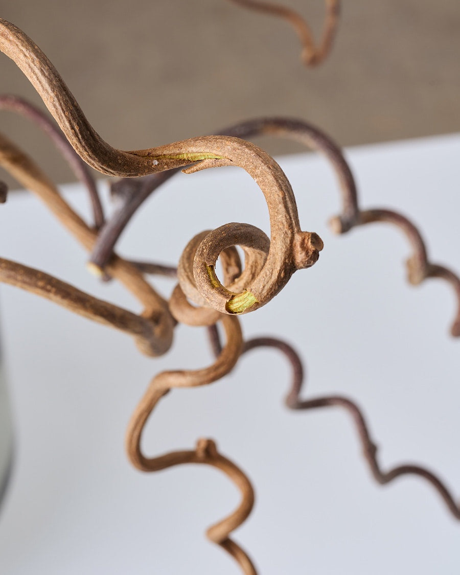 キウイフルーツの蔓をドライにしました。ぐるぐるとうねる、アートのような線が魅力です。BIGサイズなので、存在感も抜群。長さや形、うねり方の異なる5-6本を組み合わせてお届けします。