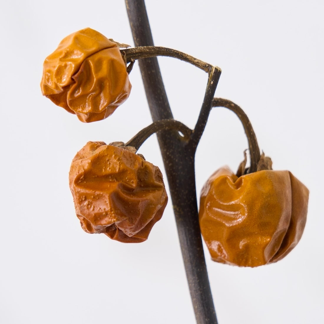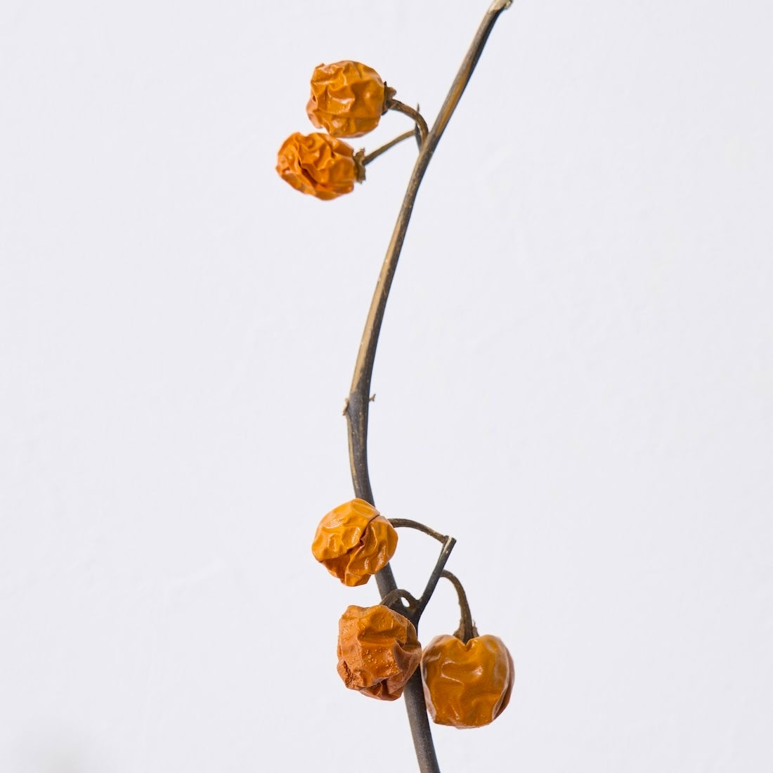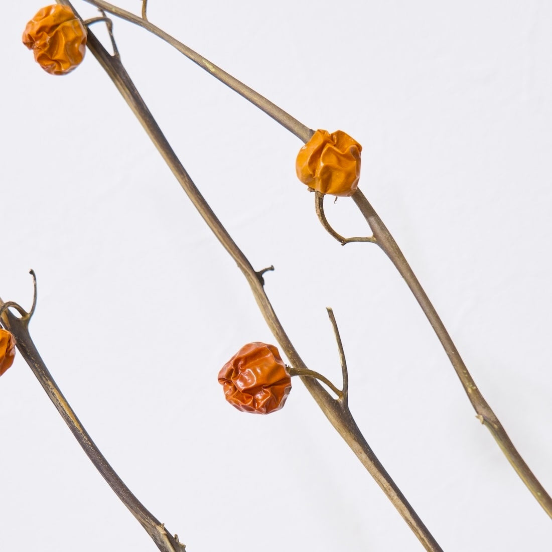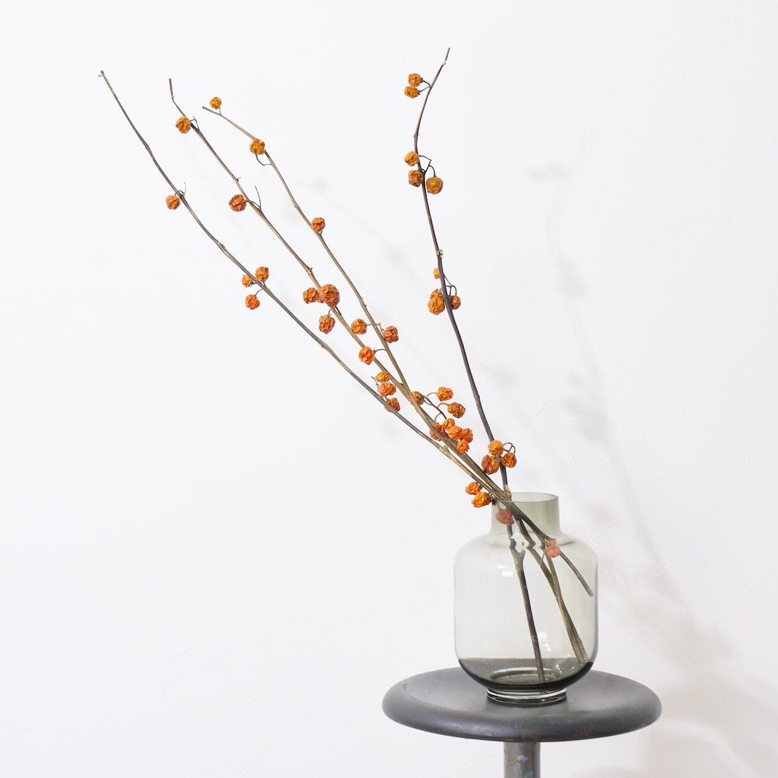 リズミカルに連なった丸い実が可愛い、ビッグサイズのハナナスピンポン。落ち着きはあるけれど、お部屋がぱっと華やぐ、そんな色合いが魅力。インテリアの主役や店舗の装飾にぴったりです。畳のお部屋など、和の雰囲気に合う植物を飾りたい方にもおすすめ。