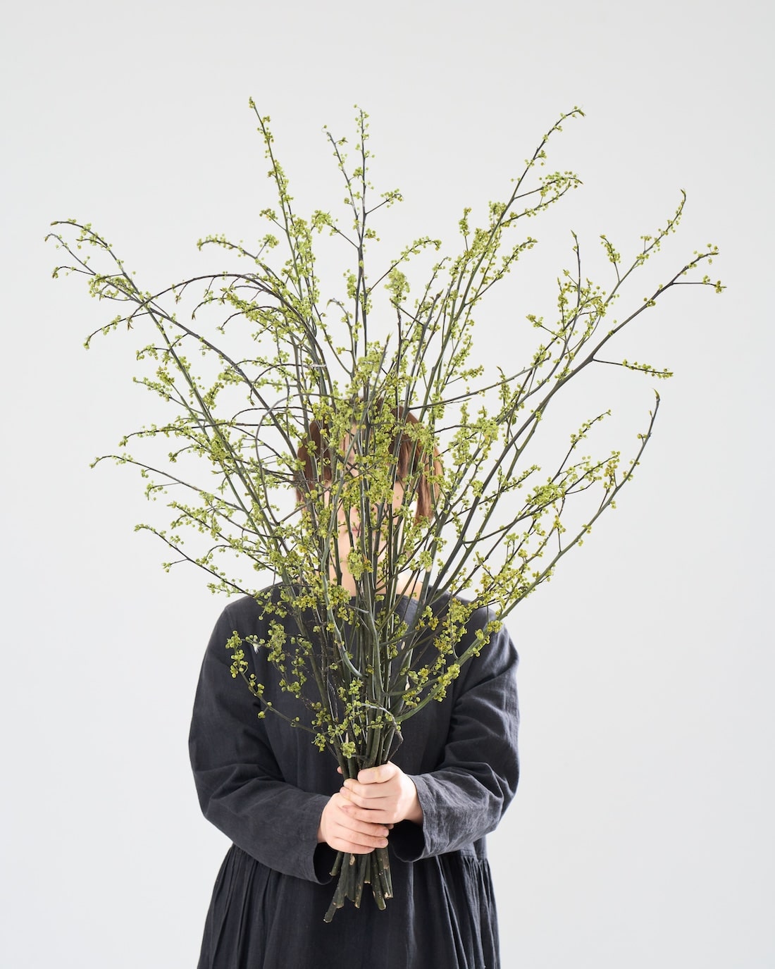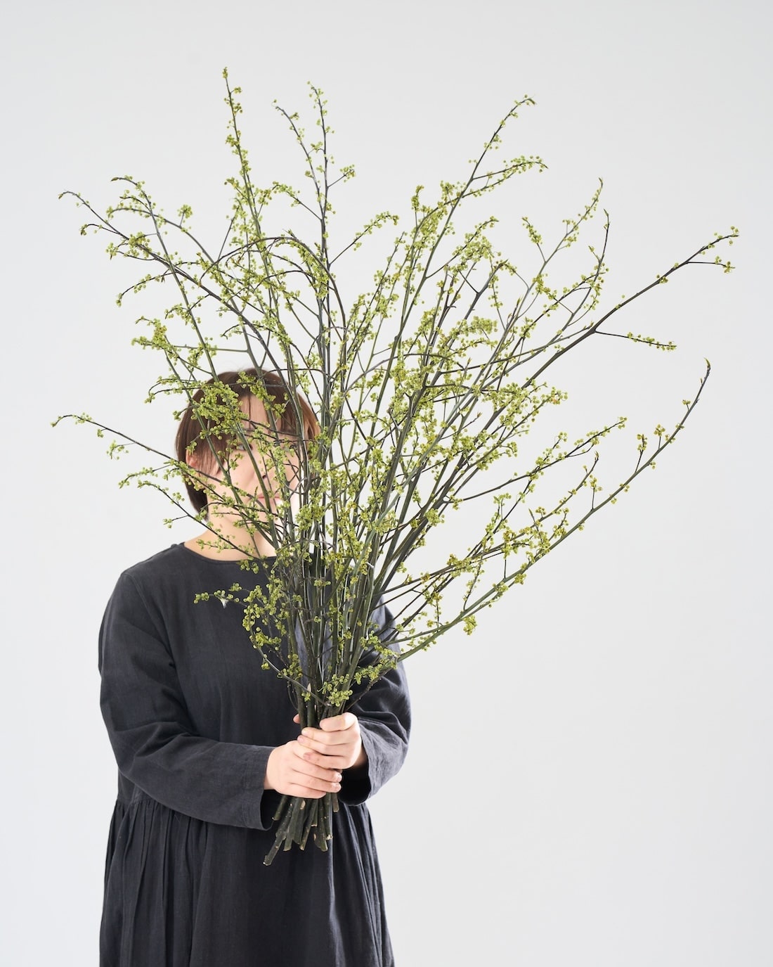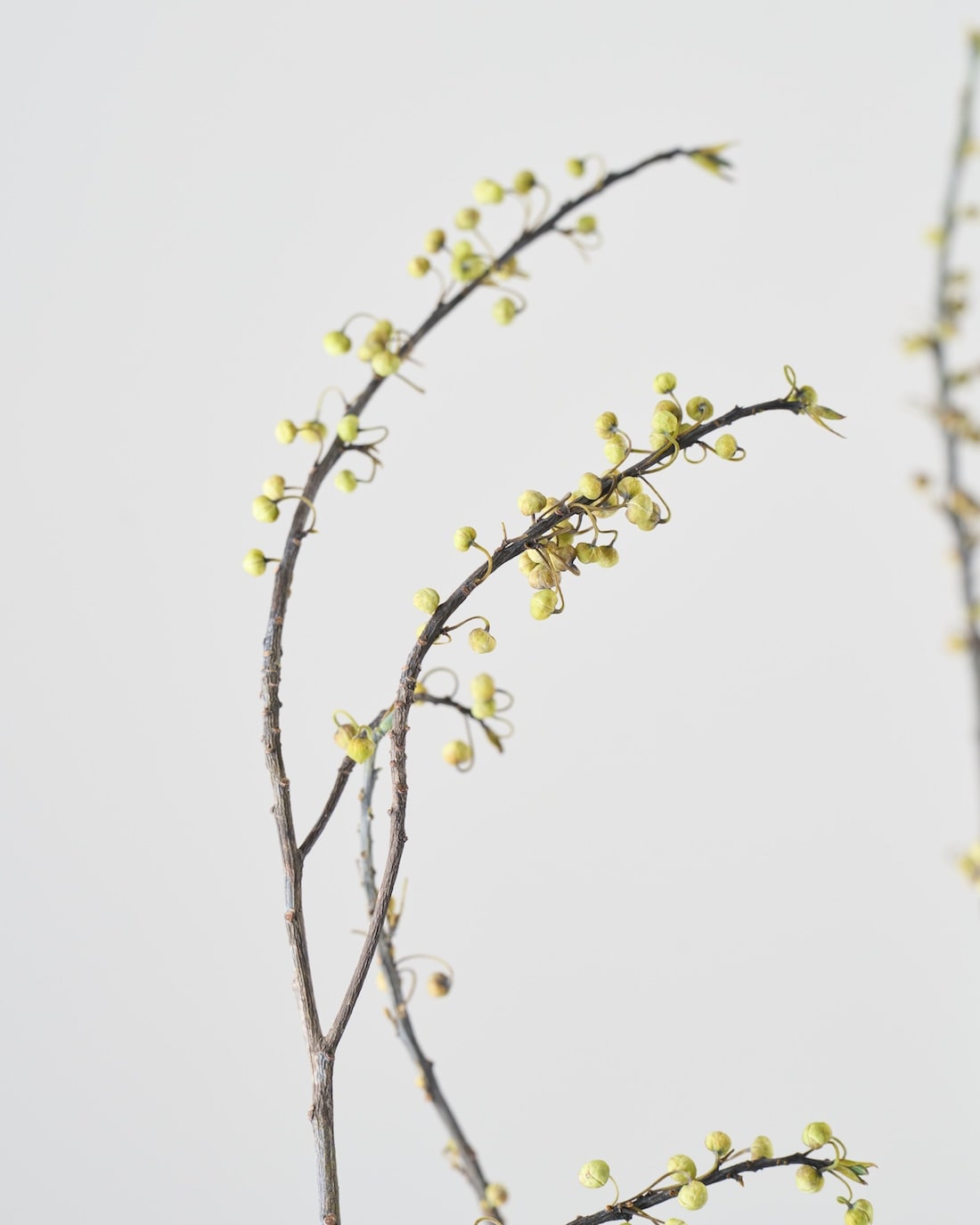 明るいグリーンの粒が連なる姿が魅力。やわらかな佇まいのアオモジを、110cmのBIGサイズでお届け。飾るだけでお部屋も心も華やぎます。
