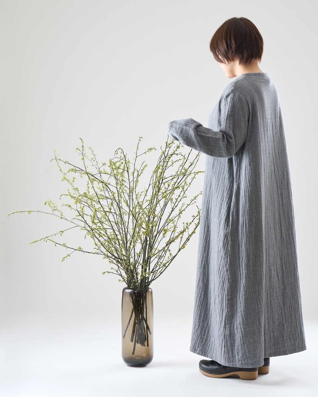 花びんの色は、アオモジの彩りが引き立つ、シックなものがおすすめ。
