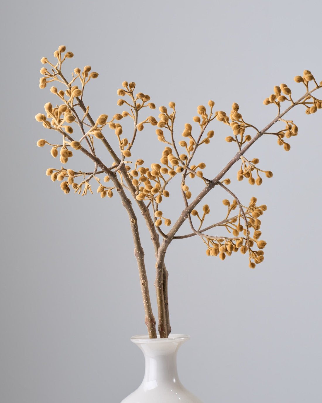 枝ぶりは豪奢だけど、ころんと実ったたくさんの蕾は、あたたかみのある可愛らしい風合い。