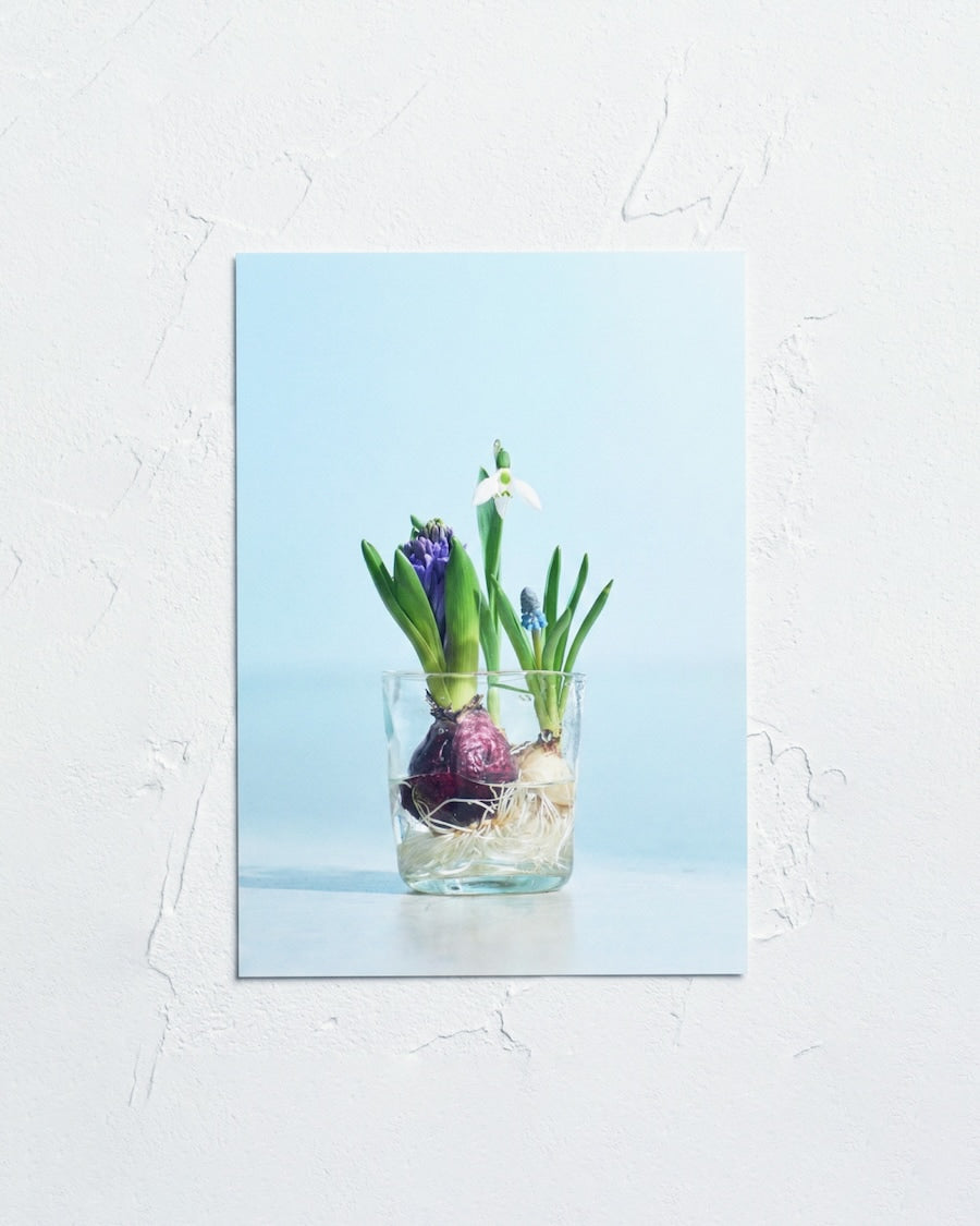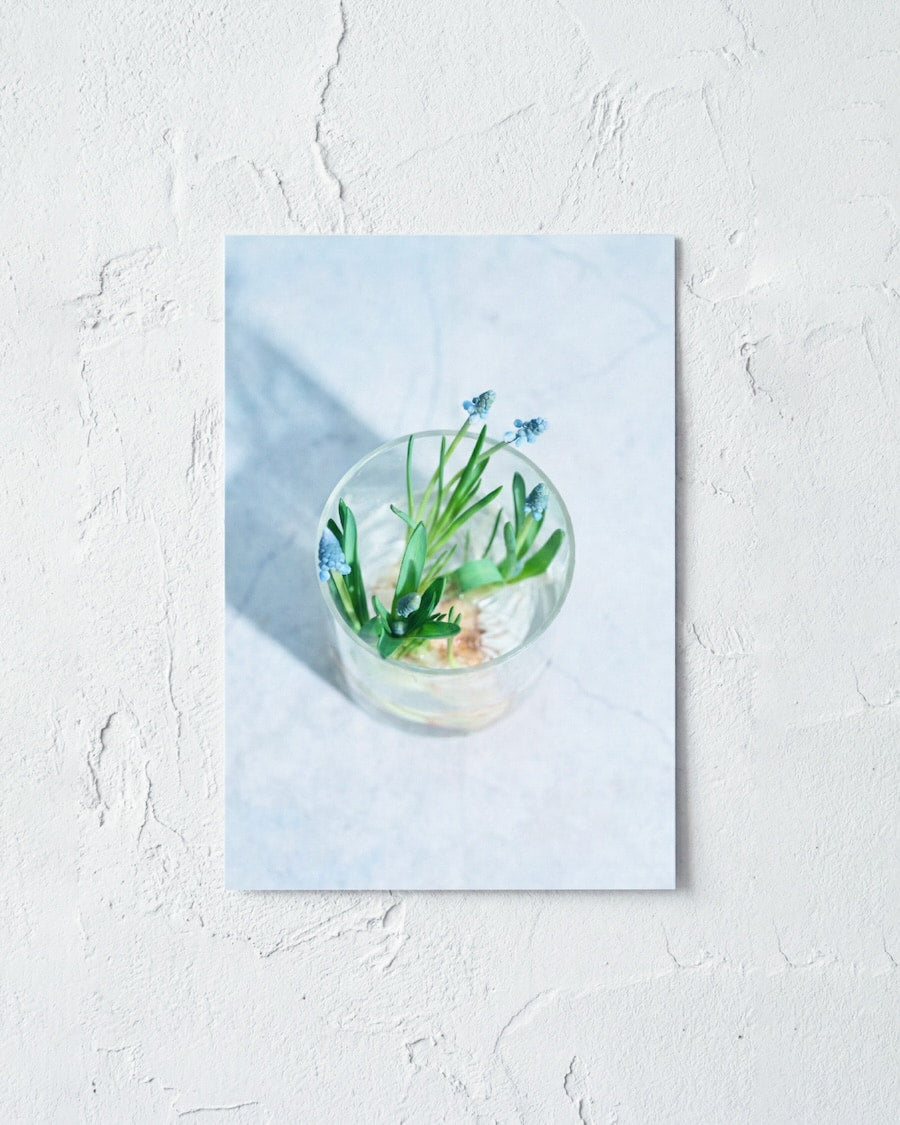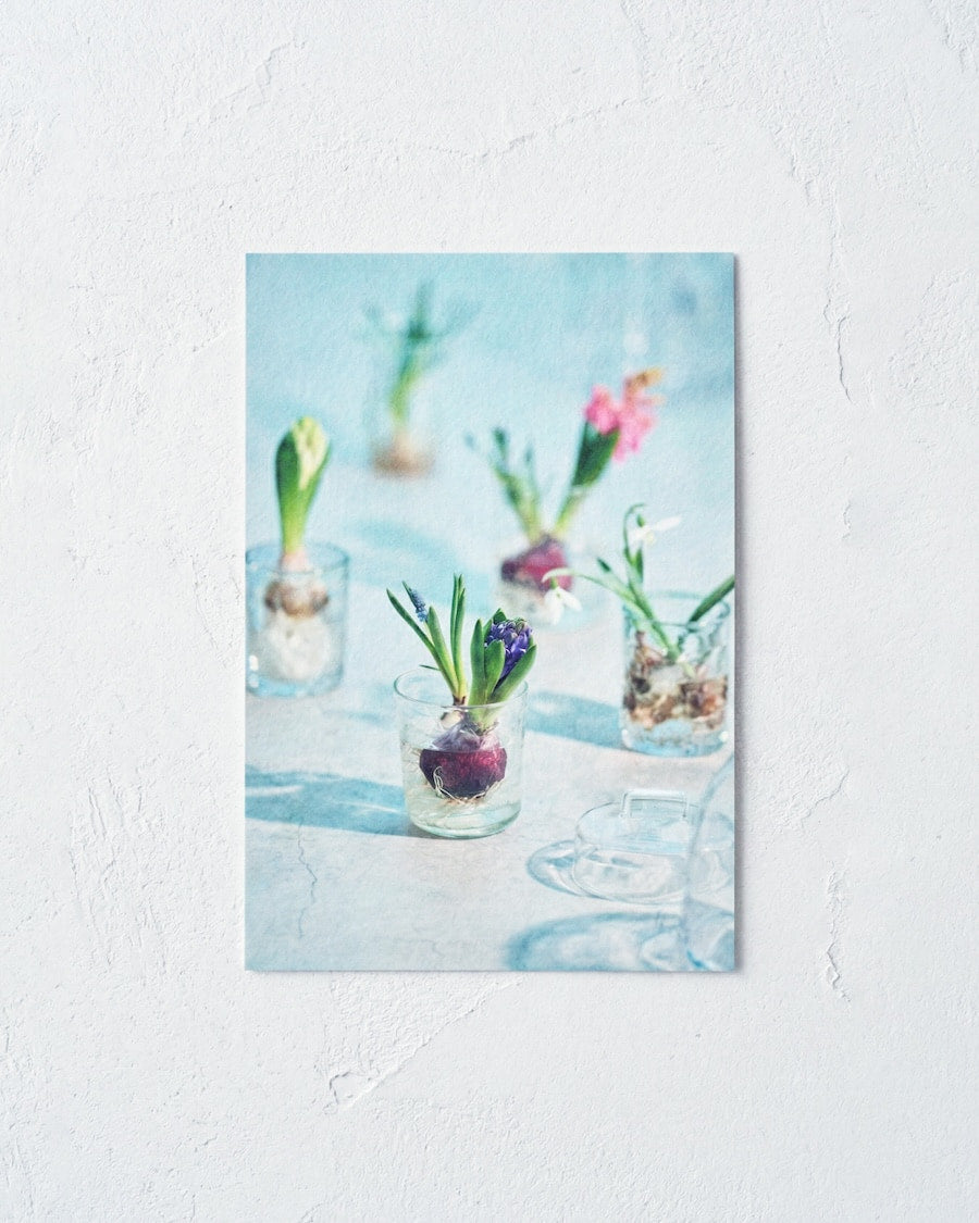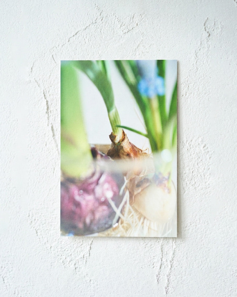 春を待ちながら芽吹く球根たちを、やわらかな陽の光とともに写真におさめました。ちょっとしたギフトにもおすすめです。