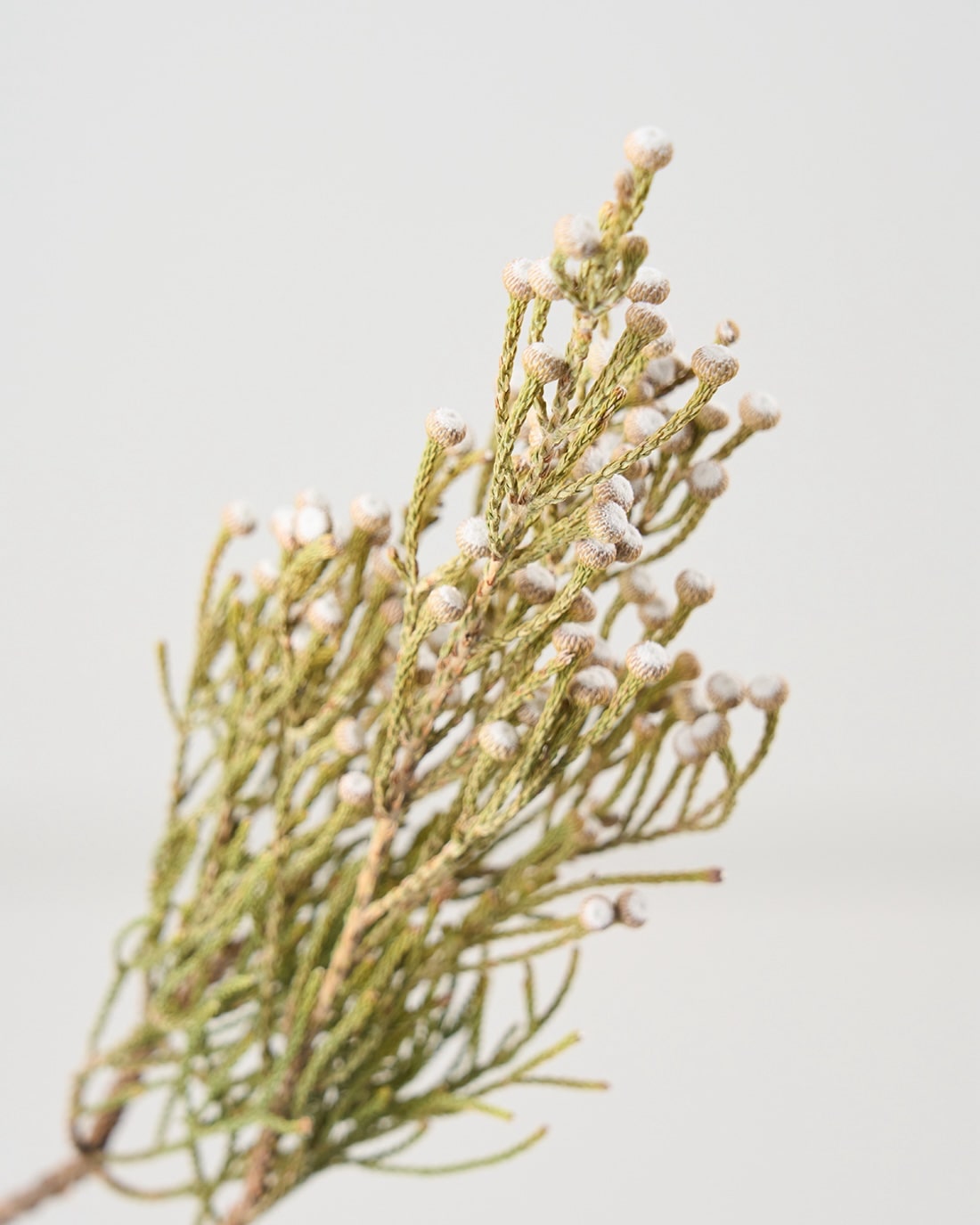 | 花材の特徴 | 銀白色の白い玉状の実のような花序をつける 1本に枝分かれして数個の花序があり、ひょろひょろとした葉も特徴的 時期により、実の大きさが異なる |