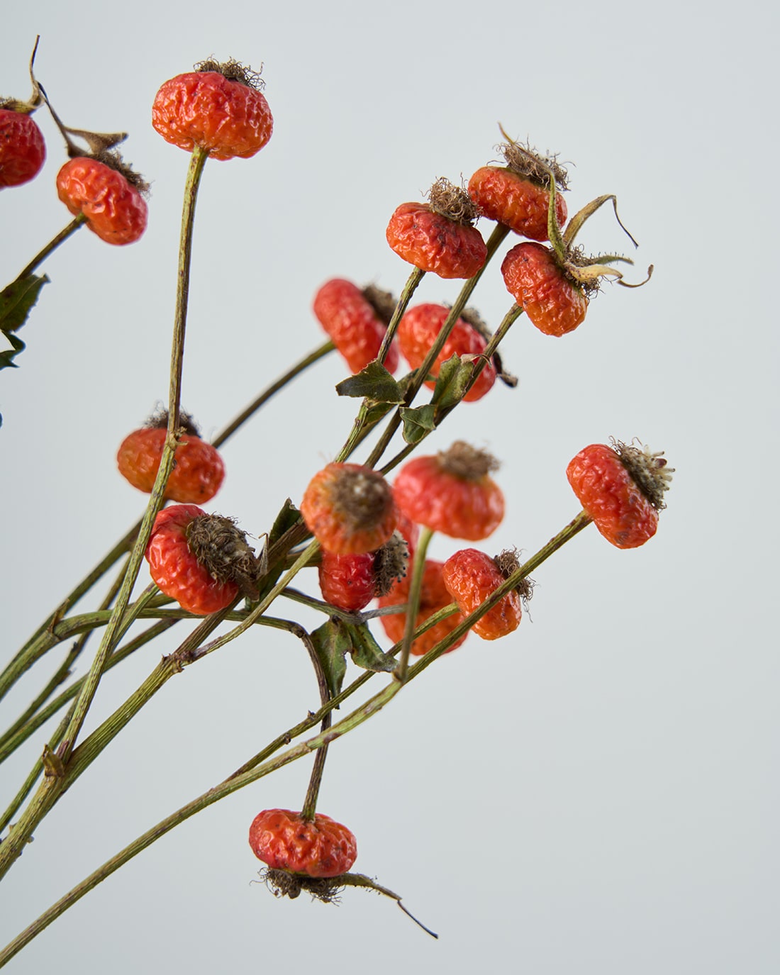 | 花材の特徴 | 実を観賞するバラ 鮮やかな赤い実が特徴的です |