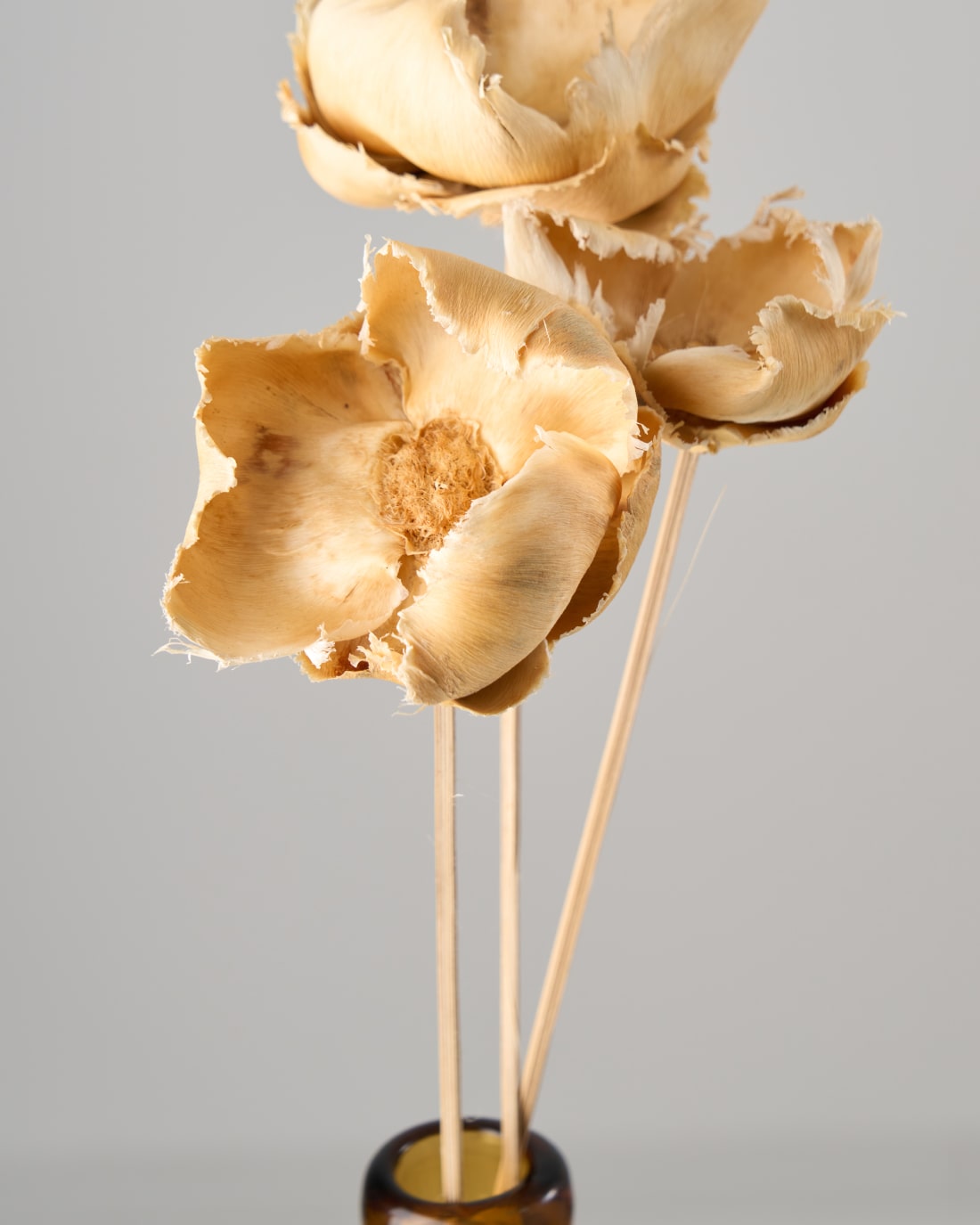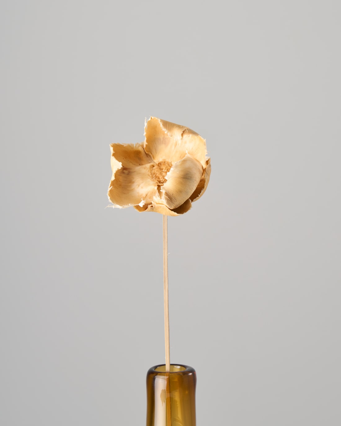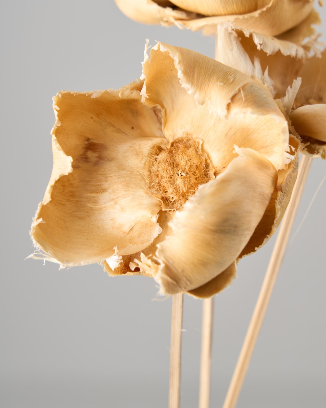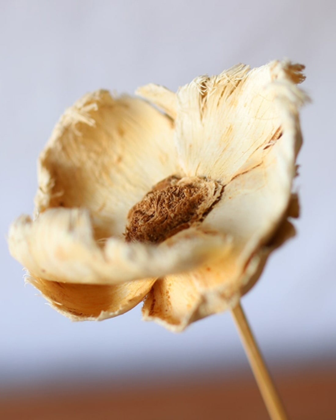 芸術品のような美しさ。お花のように見えますが、ある天然素材の皮を使って作られたものです。 同系色のドライフラワーと合わせてスワッグにしていただくと、とてもお洒落な仕上がりに。ウエディングシーンにもおすすめ。