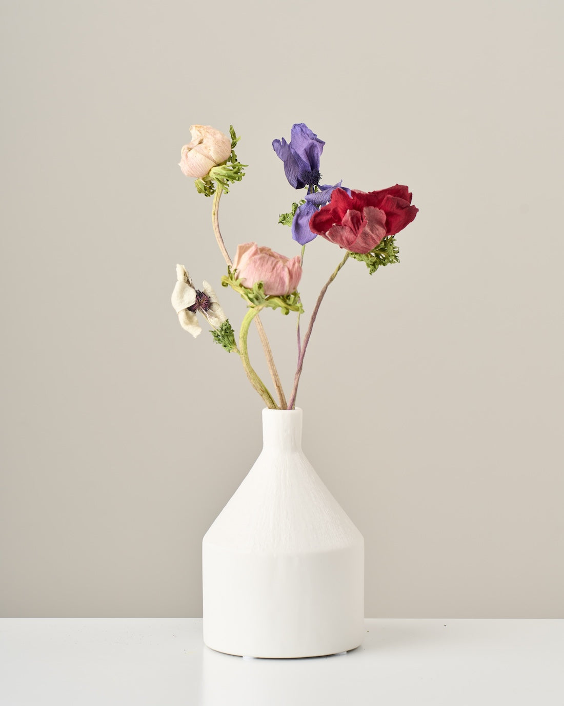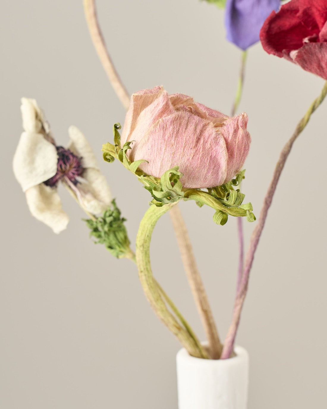 春の風をまとう、アネモネのドライフラワーが登場。アネモネという名は、ギリシャ語の 「アネモス(風)」 に由来します。お部屋に春の彩りとやさしい風を運んでくれるひと品です。5本1束をセットにしてお届けします。