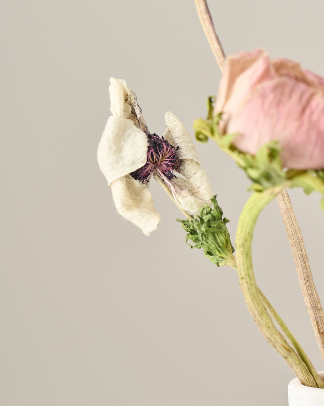 ひらひらと風に揺れる大きな花びらは、ドライになることで、くしゅっとした艶やかな佇まいに。