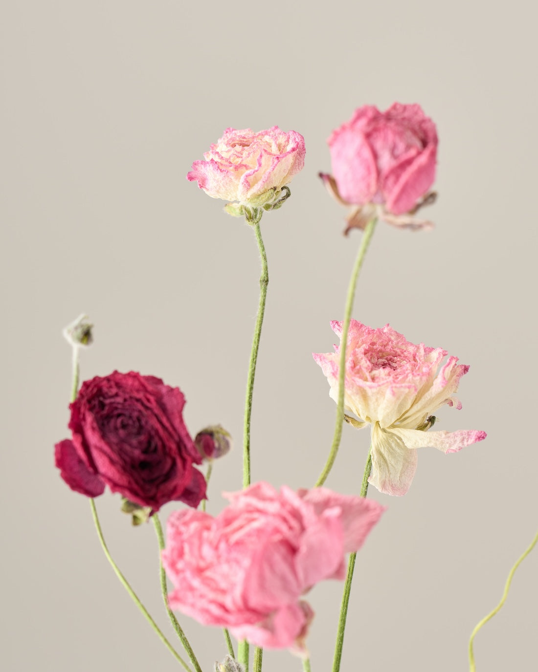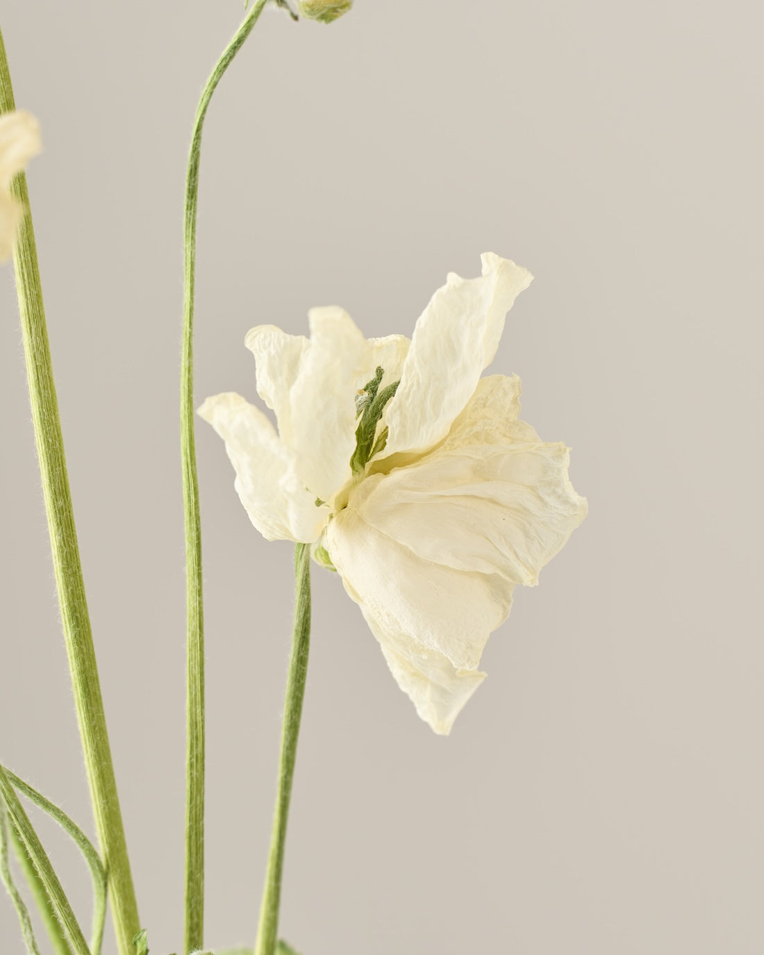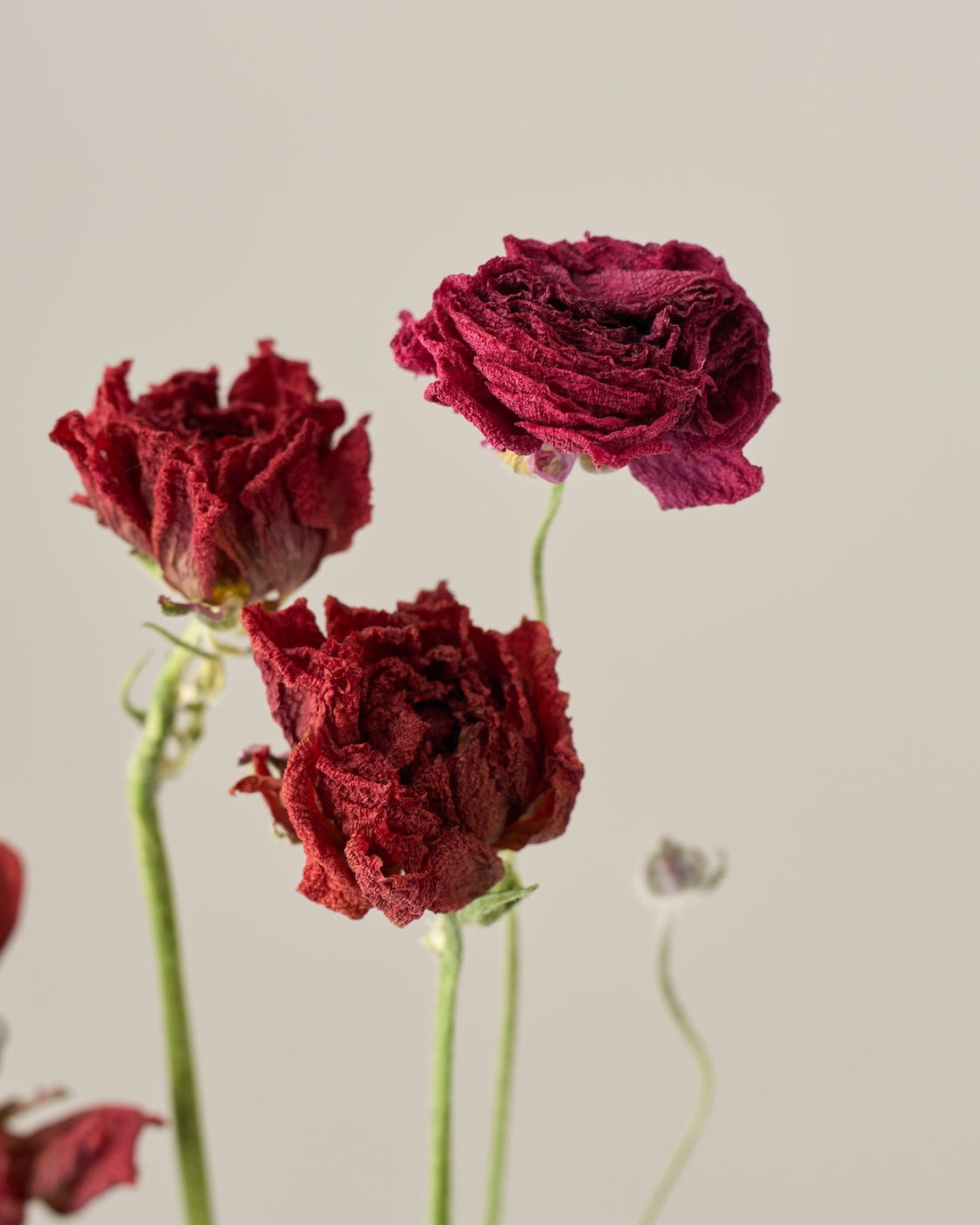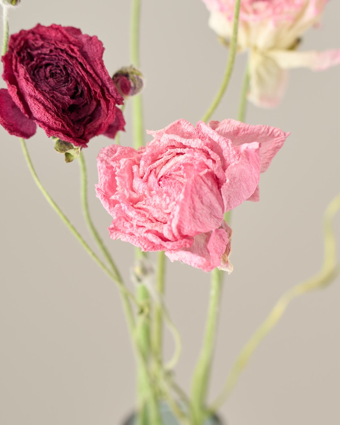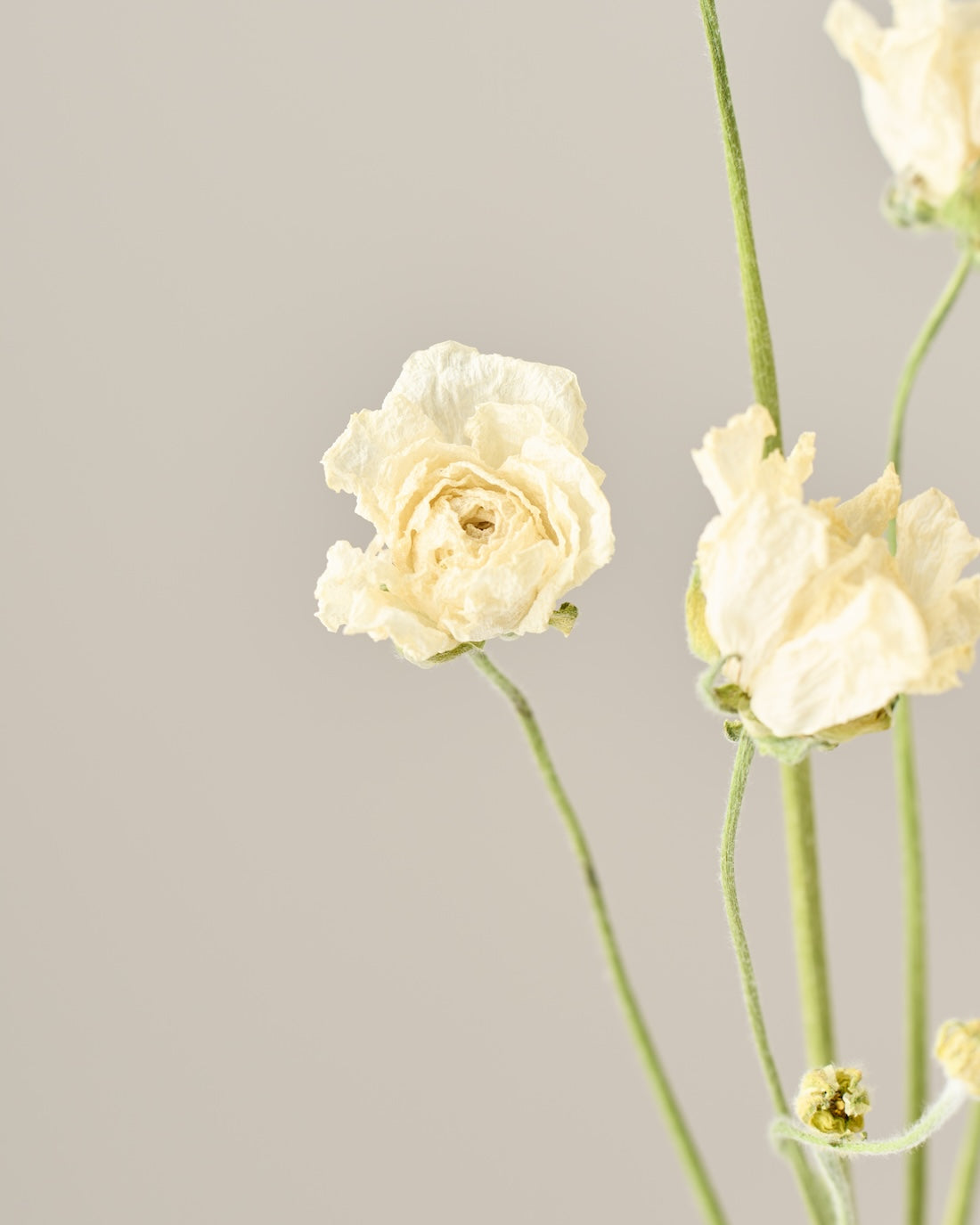 ラナンキュラスの茎は柔らかく空洞になっているため、ドライにした後は特に折れやすくなっています。