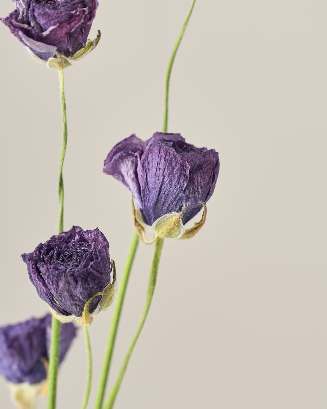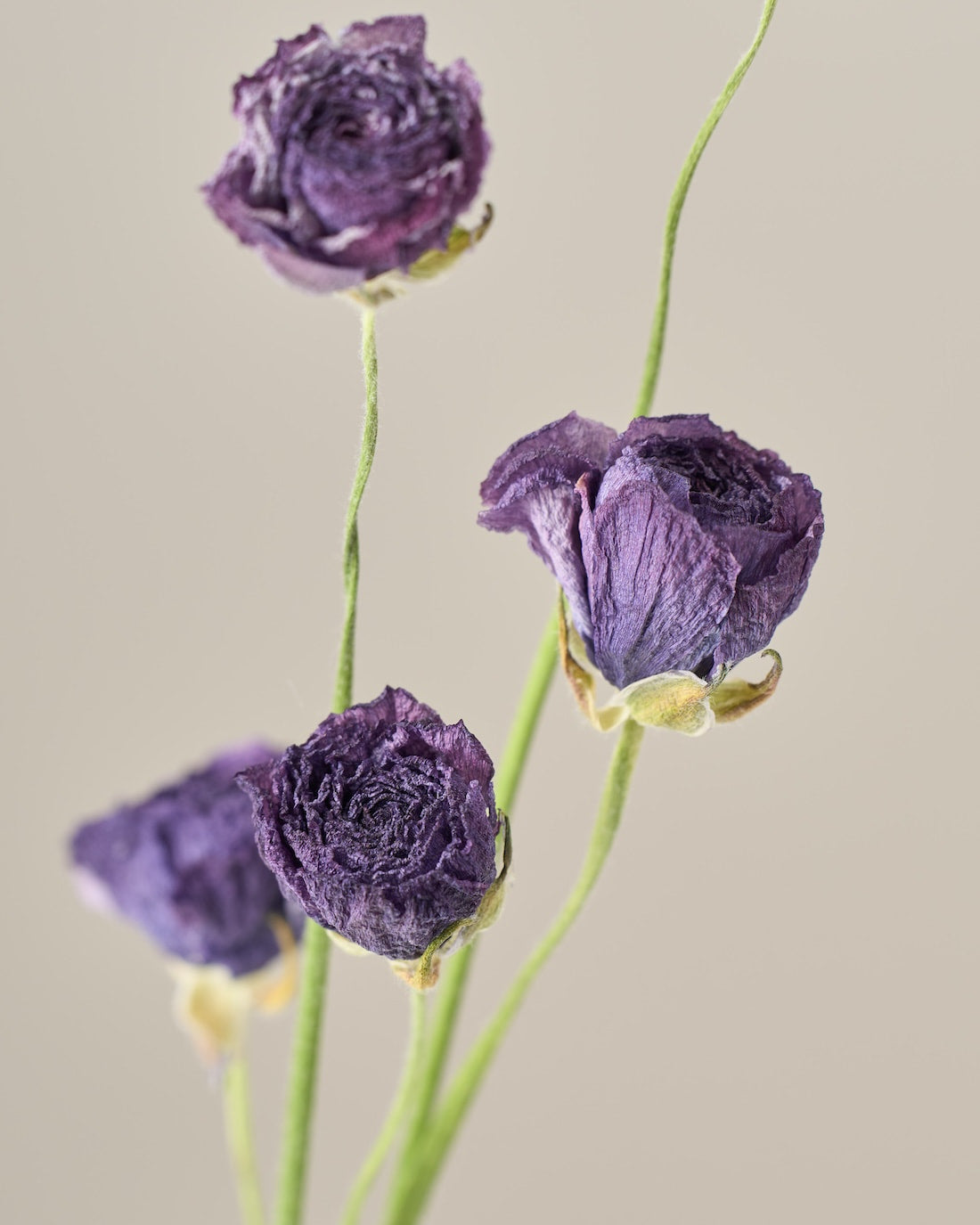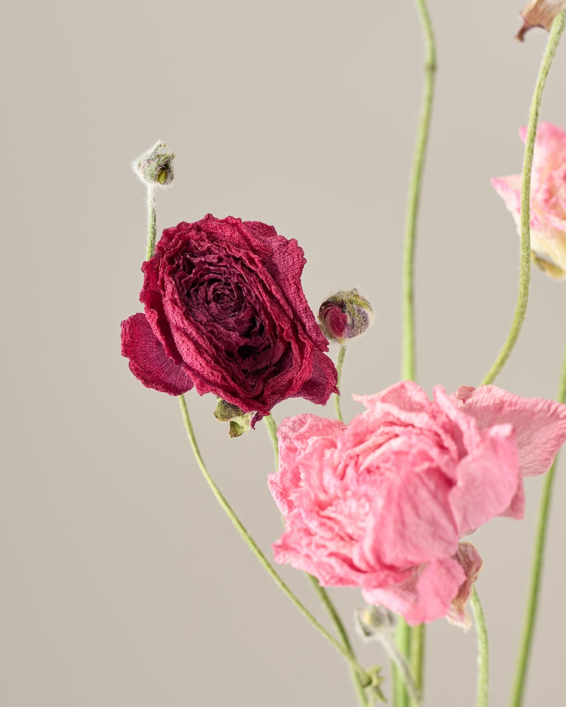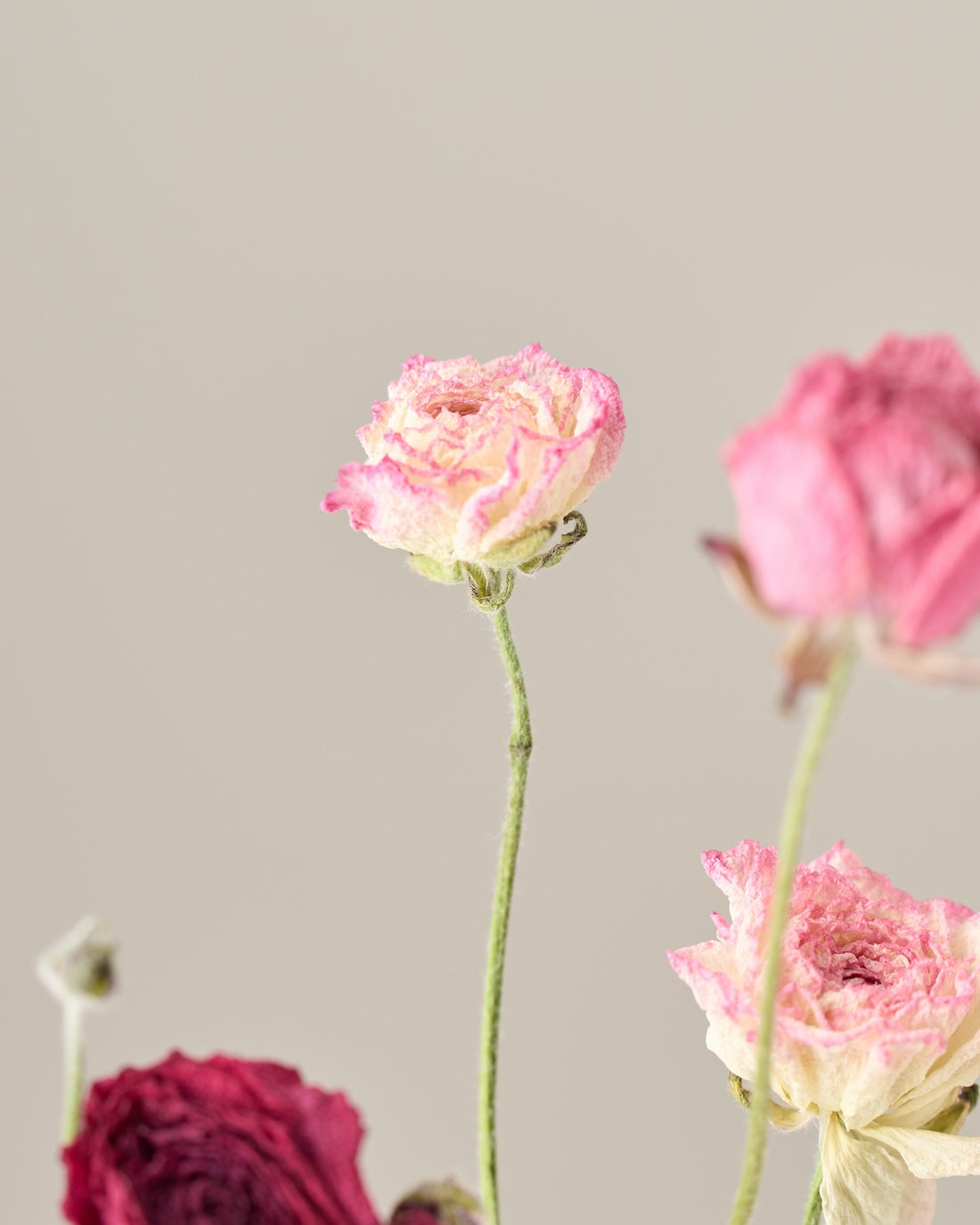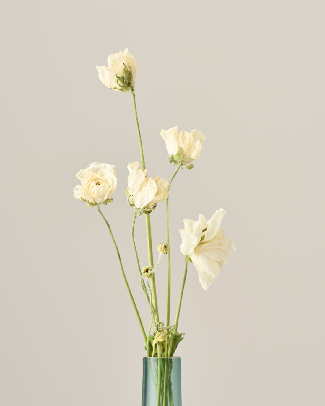 ラナンキュラスの茎は柔らかく空洞になっているため、ドライにした後は特に折れやすくなっています。
