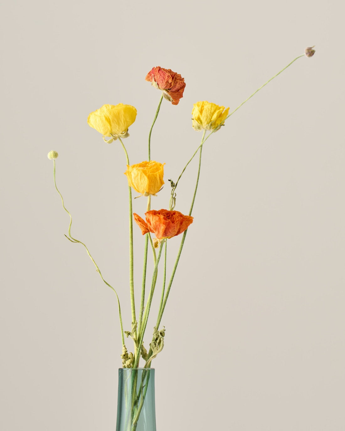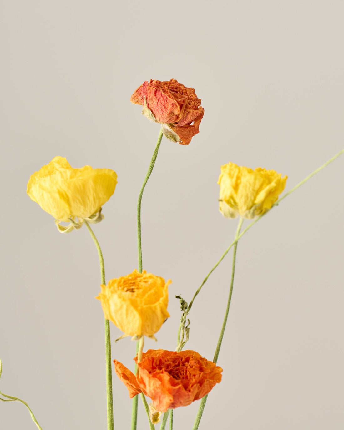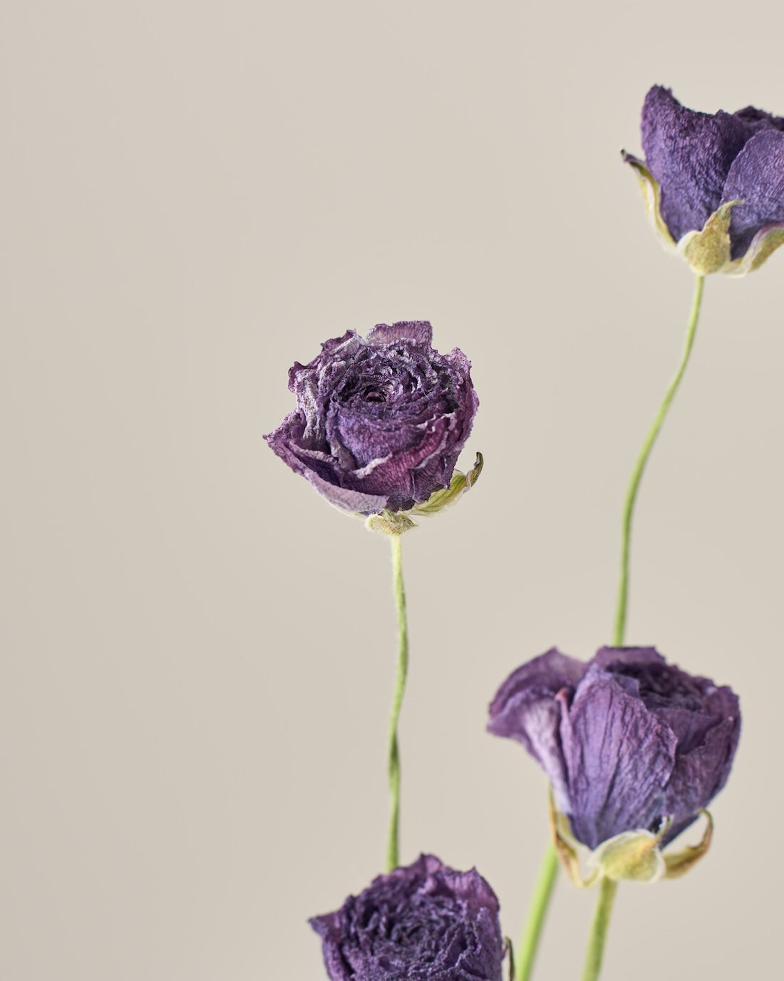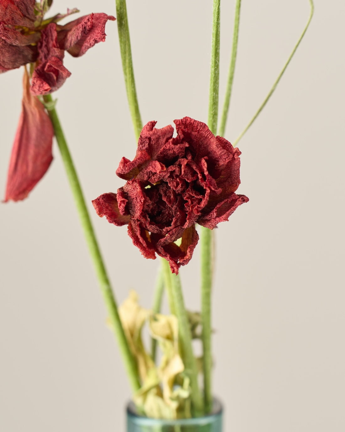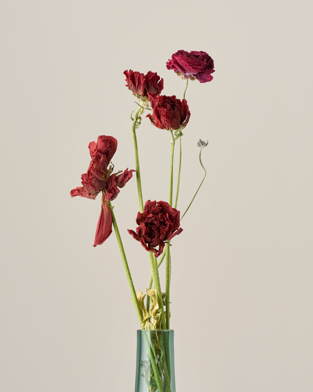 ラナンキュラスの茎は柔らかく空洞になっているため、ドライにした後は特に折れやすくなっています。