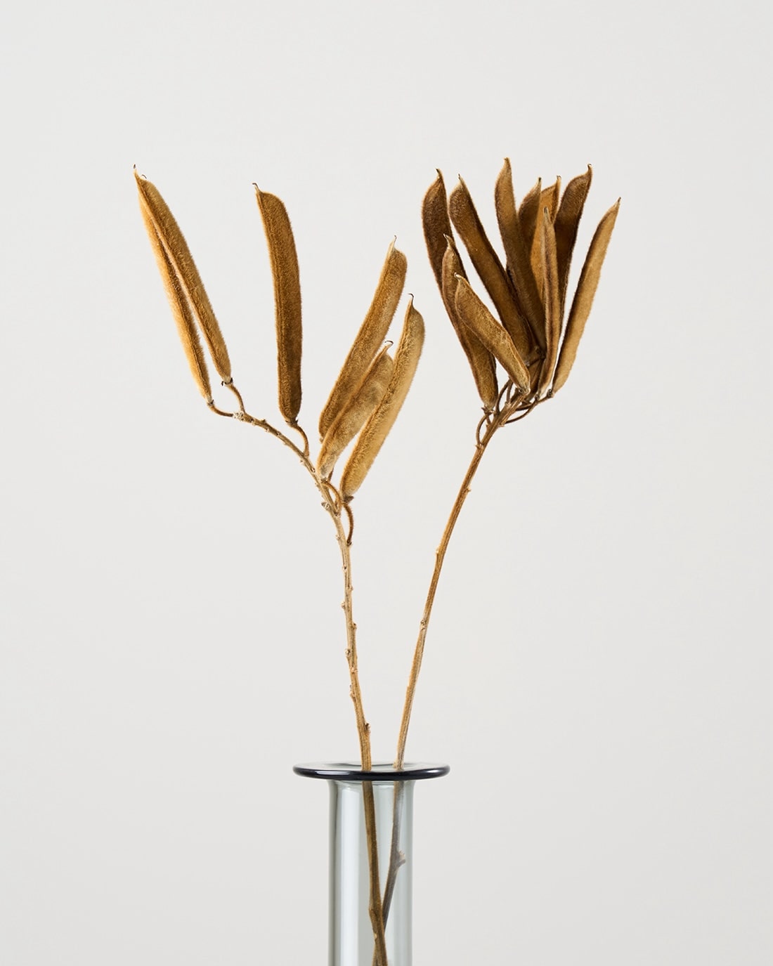 その名の通り、実の表面をうっすらと覆う毛は、ベルベットのような質感。存在感があるので、単体でフラワーベースに飾るだけで素敵な空間が生まれます。