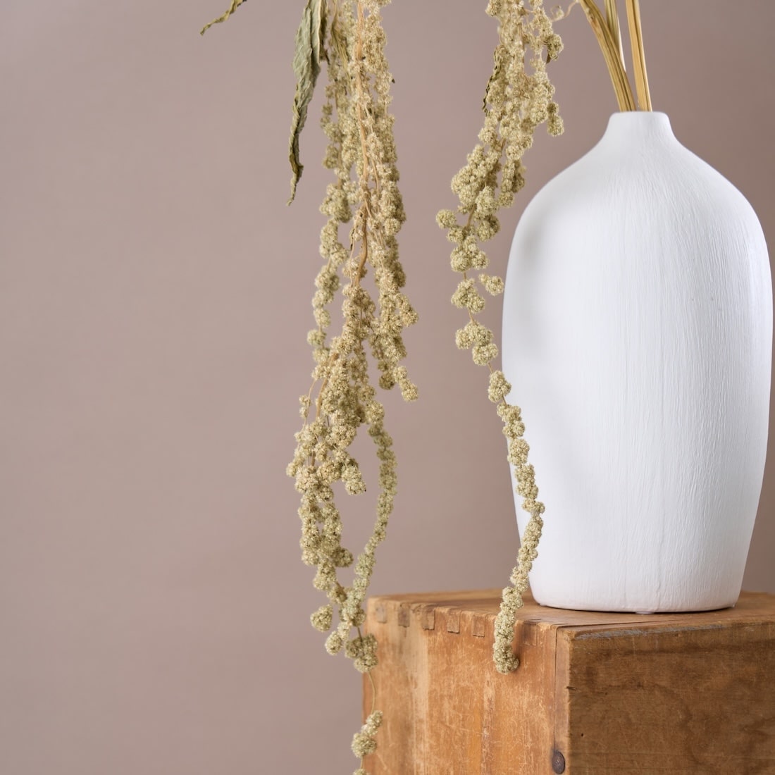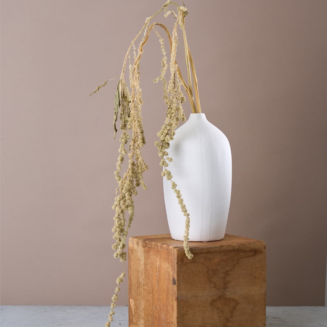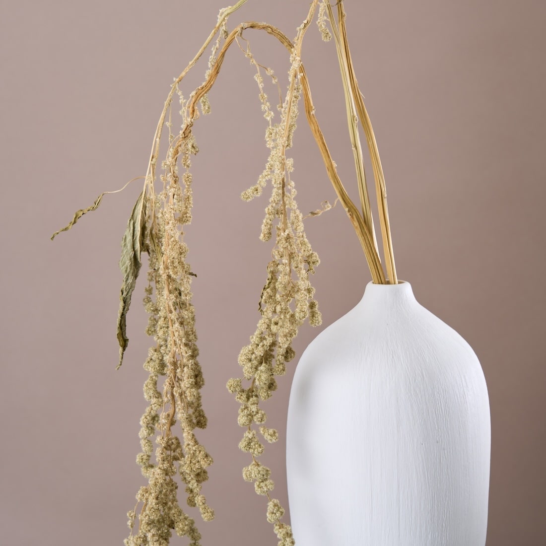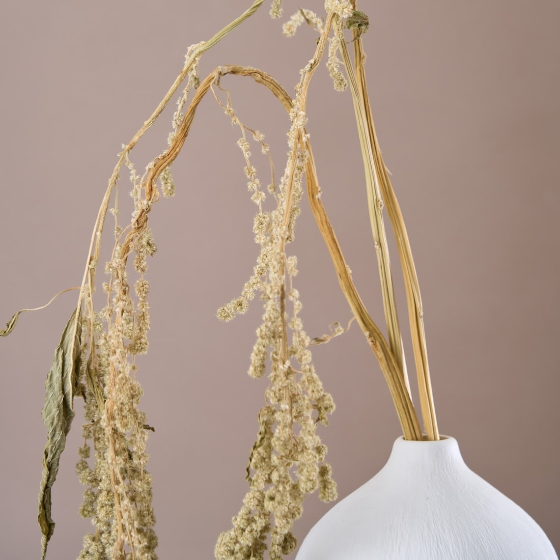 たわわに実って頭をもたげる稲穂のよう。ケイトウの仲間[アマランサス]の花姿は、豊かな秋の実りを彷彿とさせます。 ワイルドな見た目だけど、落ち着いたカラーだから、上品な雰囲気も。