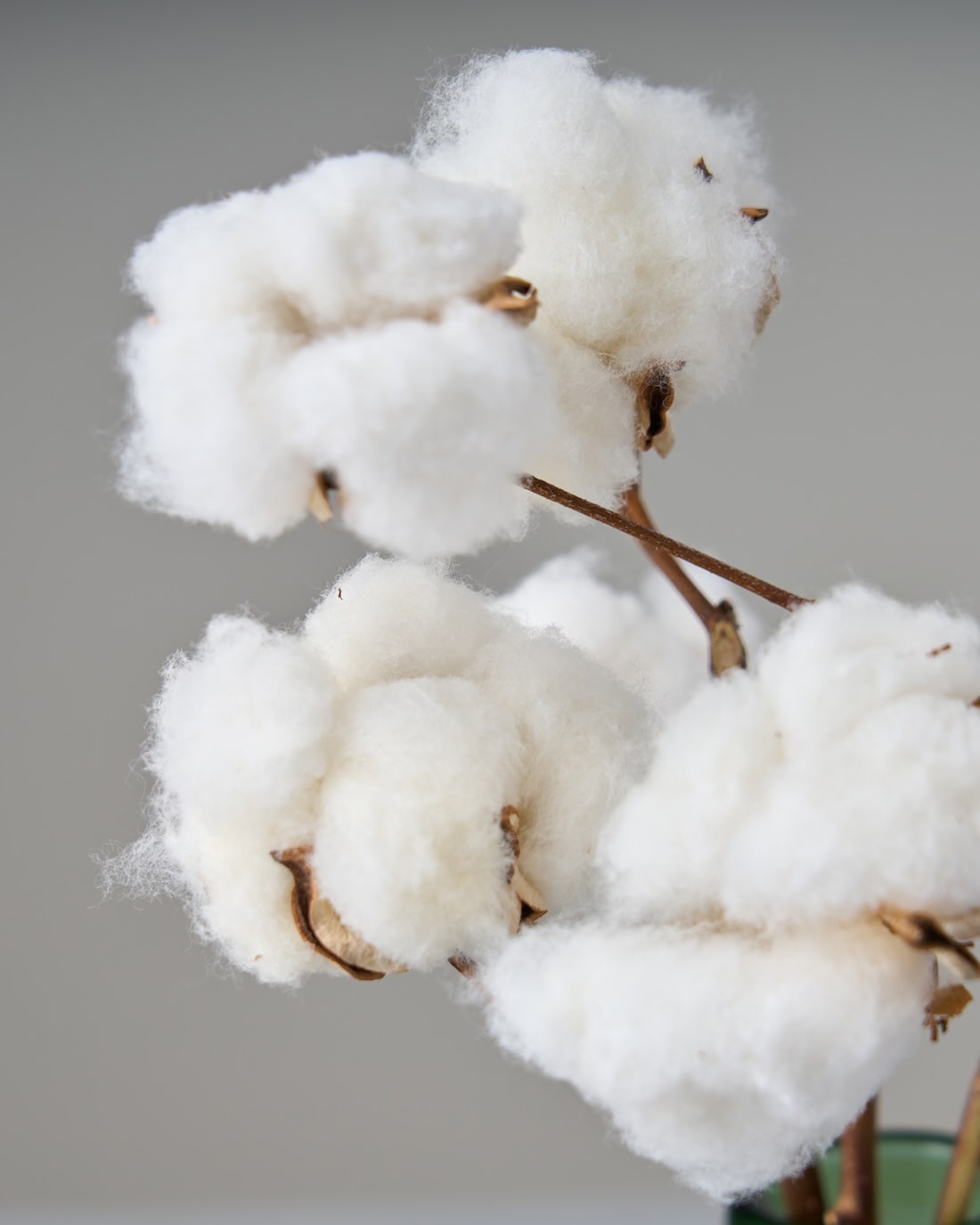 コットンは十分に実が開いたものが5つついた状態でお届けします。