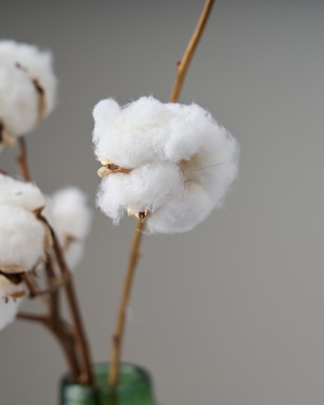 岡山県の山間部にある農園[小さなテキサス]でうまれた、特別なコットンをお届け。 真っ白で、ふわふわで、ちょっといびつな感じがたまらない。 このコットンを使ったクリスマスのアレンジメントもご紹介していますのでぜひご覧くださいね。