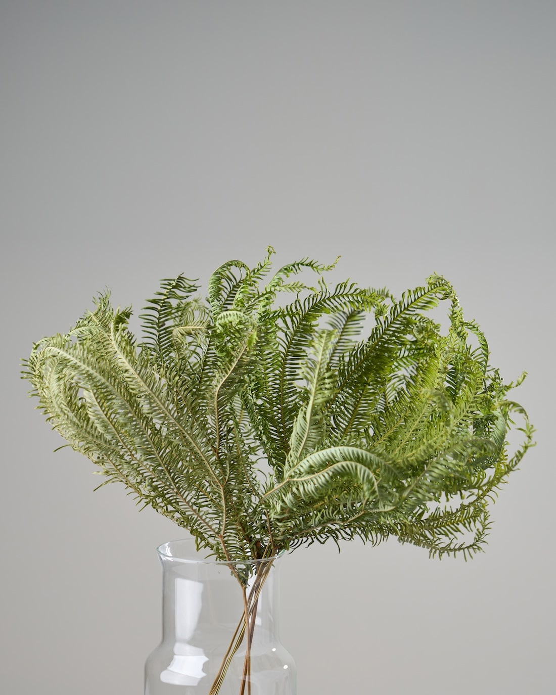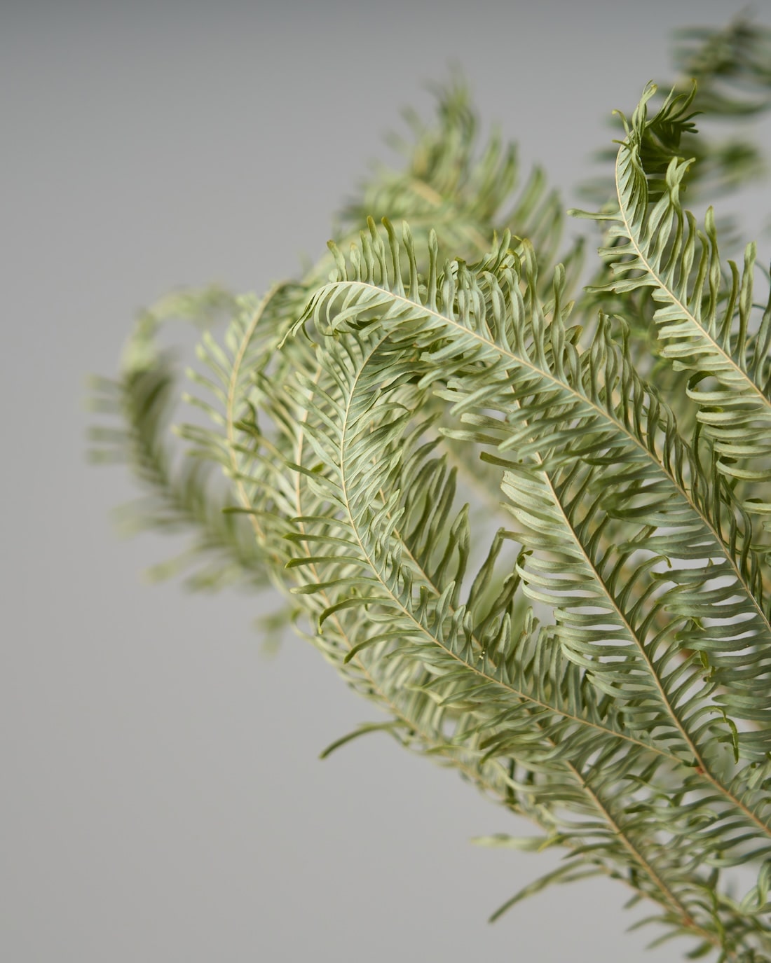 ユニークな形のアンブレラファーンのドライフラワーです。葉が傘のように広がることから、この名が付きました。明るいグリーンの色合いは、ドライにしてもみずみずしい印象。お部屋を明るい雰囲気にしたい方にぴったりです。