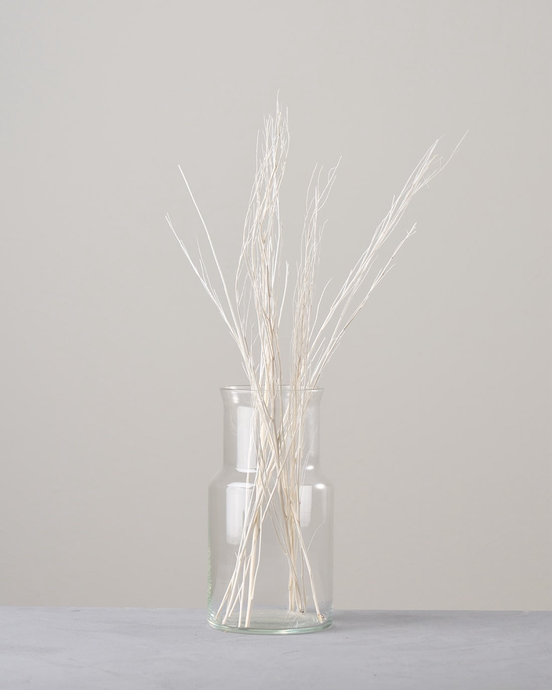 どこか儚さも感じさせる枝ぶりに心惹かれます。色や形がシンプルな花びんを選ぶと、ほうき草の線の美しさがより際立ちます。ホワイト系のドライフラワーと組み合わせても素敵です。