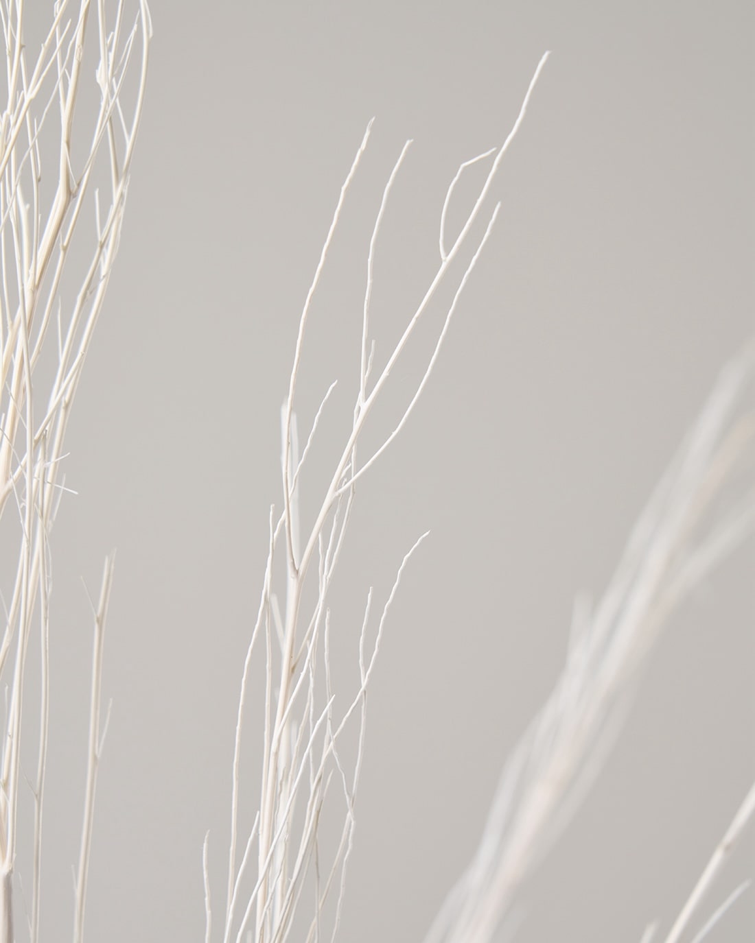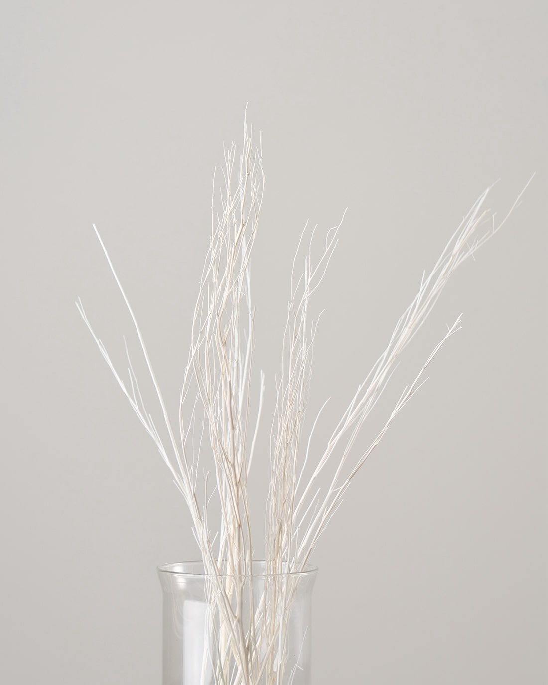 晒し加工をした、ホワイトのほうき草です。雪化粧したように真っ白で、しなやか。