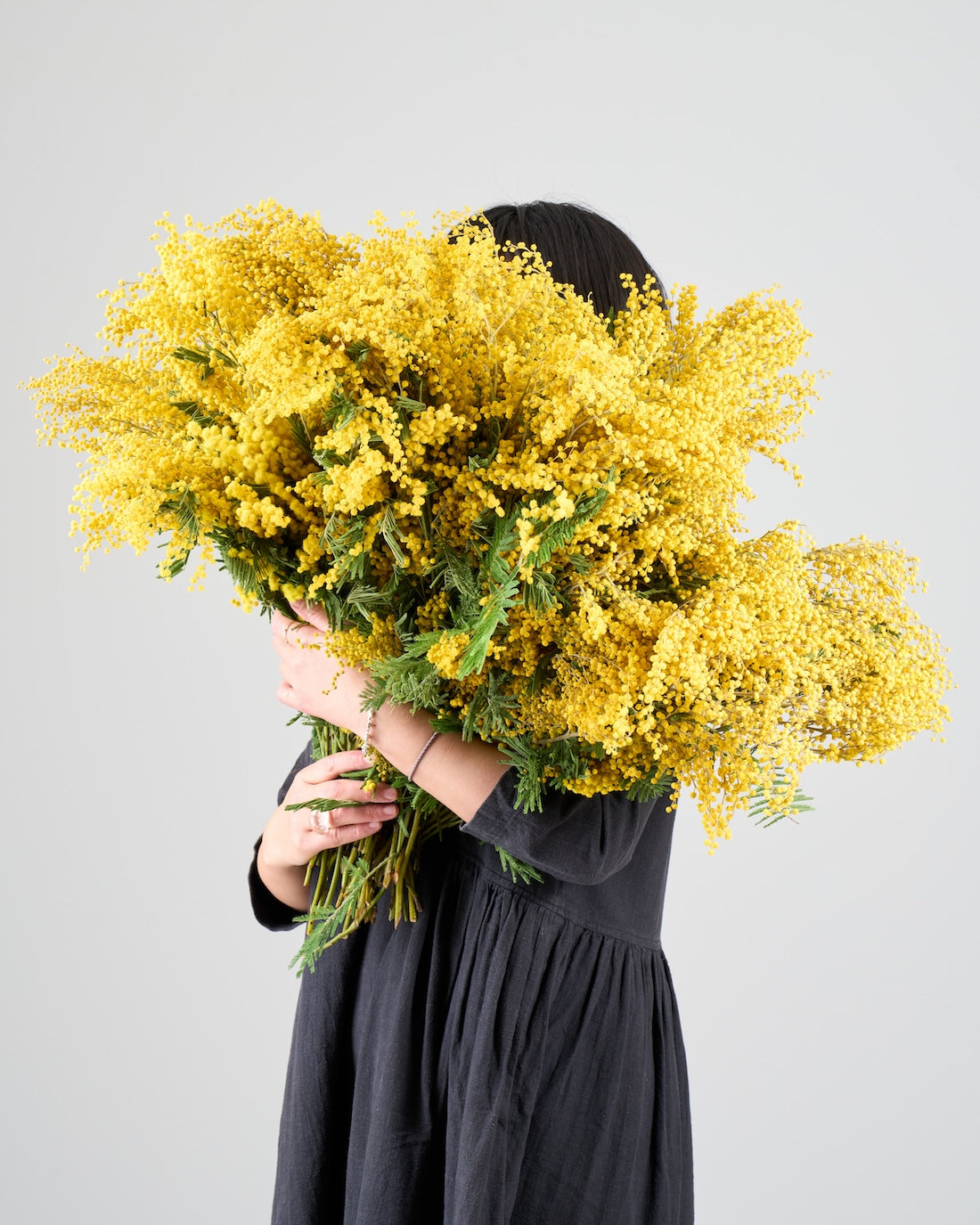 春を告げる花、ミモザをフレッシュ(生花)の状態でお届け。あたたかな陽だまりのような鮮やかな黄色が可愛らしいひと品です。フレッシュからドライへと変化する過程をお楽しみください。自宅で上手に乾燥させる方法もご紹介します。