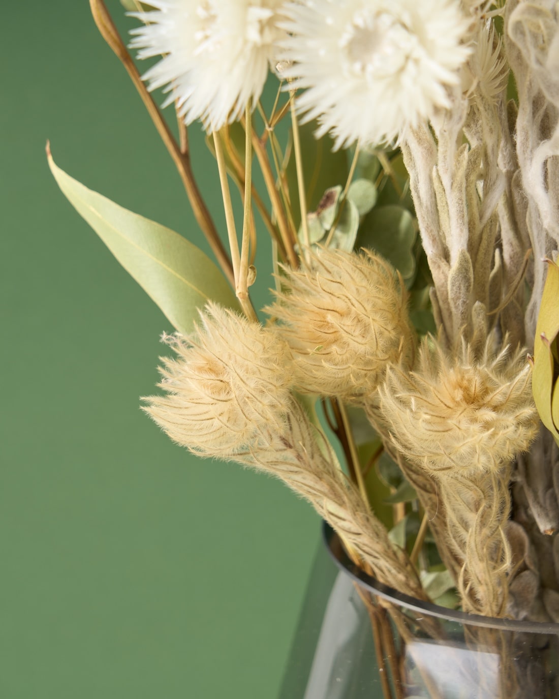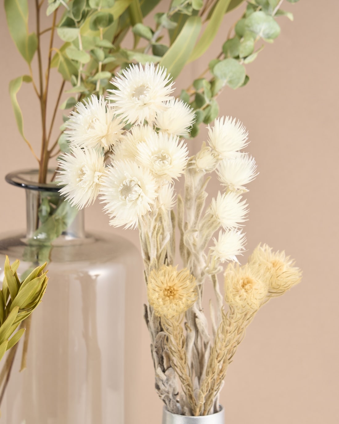 ドライフラワーって、種類も色も形も本当にたくさん。 「相性の良い組み合わせが分からない」という方におすすめの、アキレアとフィリカのセットをご用意しました。あたたかみのある、やさしい色合いのものばかりなので、どんなお部屋にも馴染みやすい。お手持ちのフラワーベースに、心向くままに飾ってください。