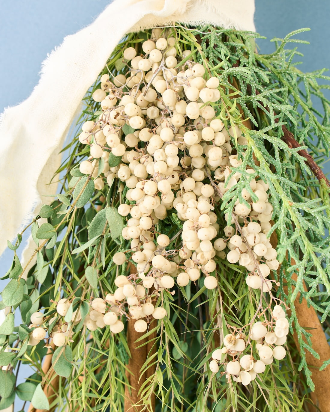 冬の贈りものにぴったりなスワッグ、<スパイシー・ラテ>をご用意しました。