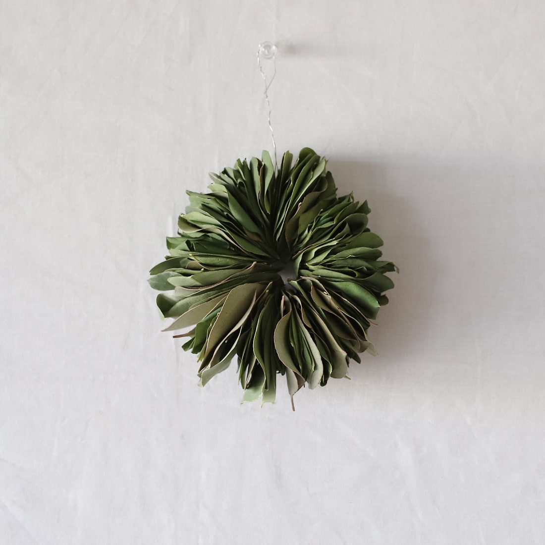 まるまるとしたもの、ハート型のもの、縦長のもの、よく見ると個性あふれる葉っぱたち。ポポラスの葉っぱを何層にも重ねた手のひらサイズのリース。ナチュラル感あふれるリースがお部屋を爽やかに彩ります。