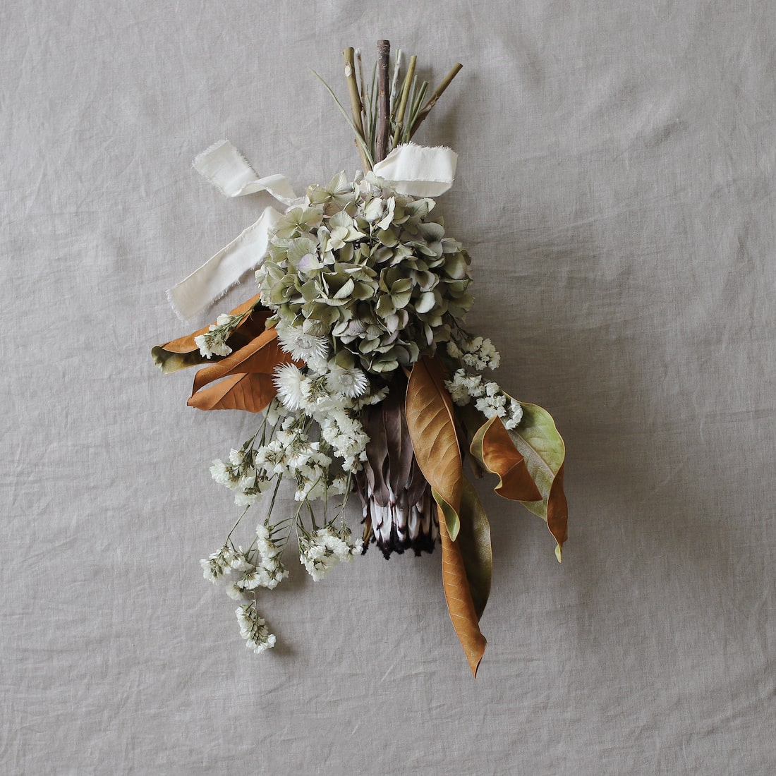 <残り香>紫陽花・マグノリア・スターチスのスワッグ
