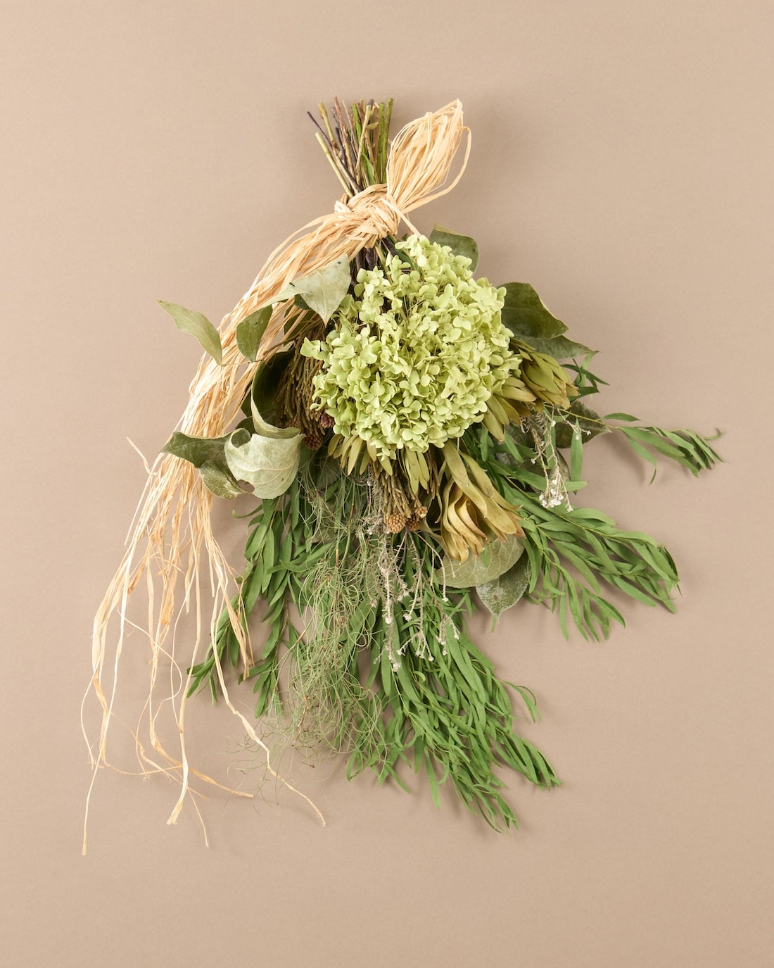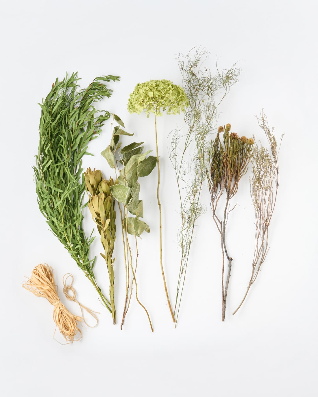 手作りキットには、届いてすぐに束ねていただけるよう、ラフィア(ナチュラル)をお付けしています。