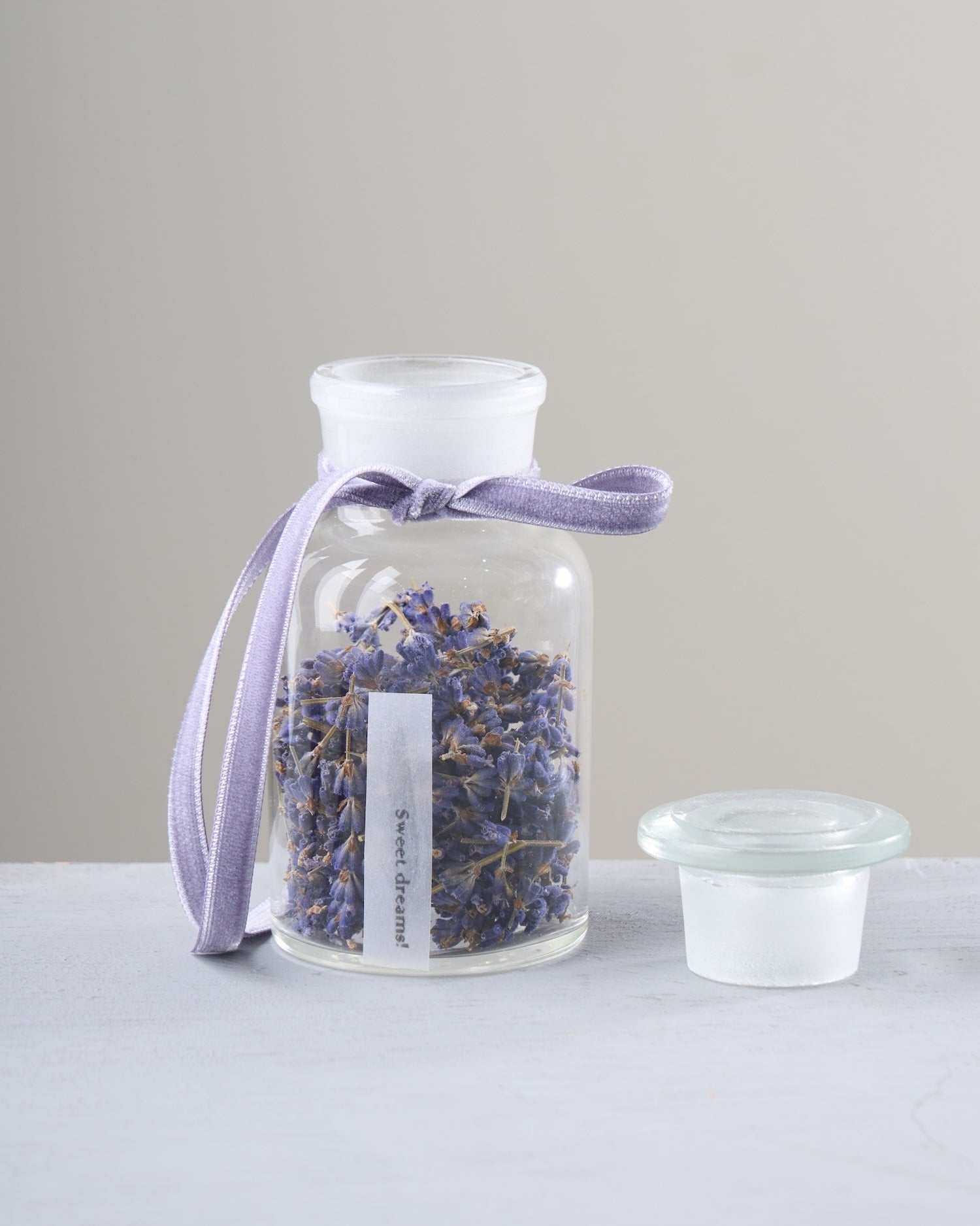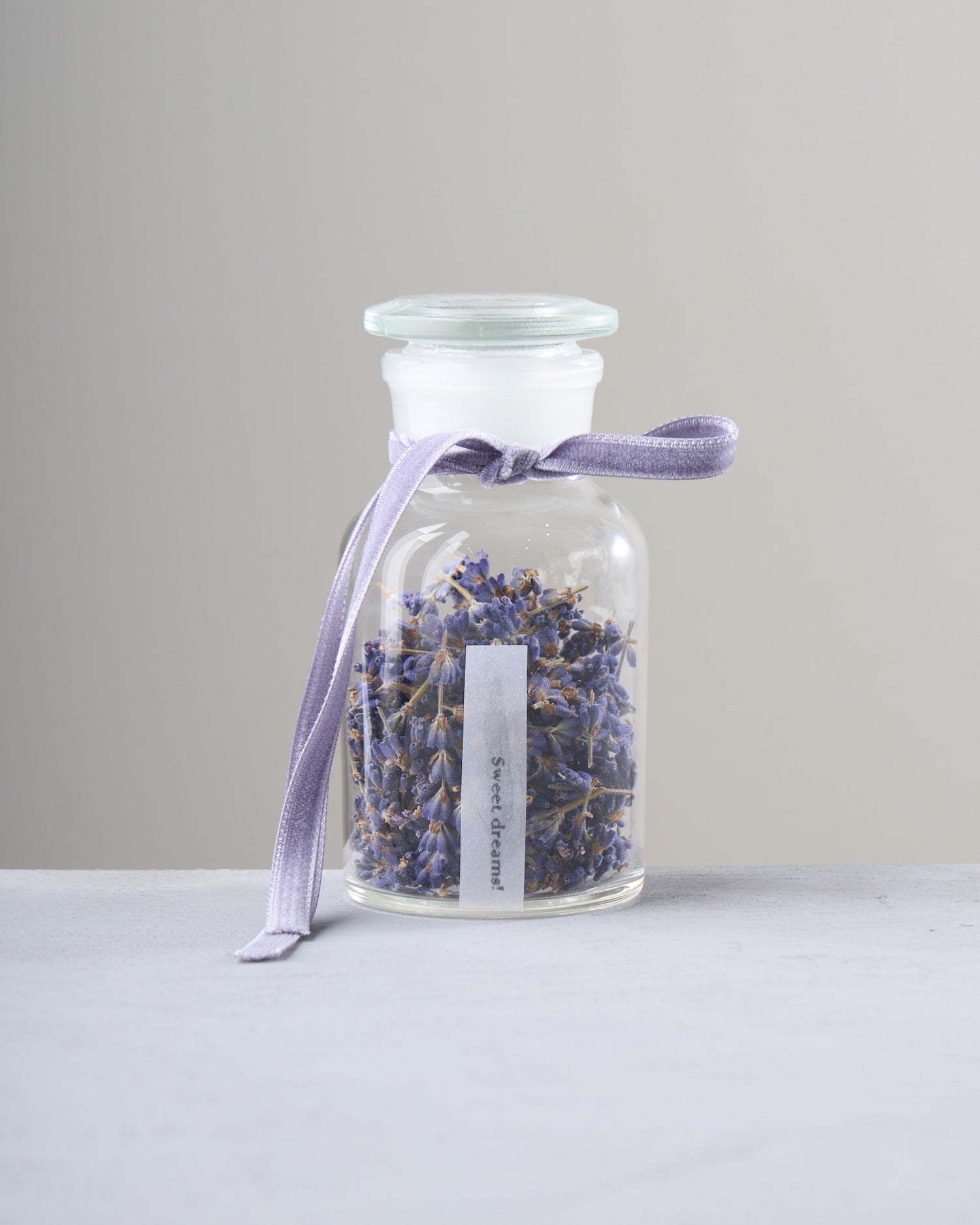 ラベンダーの美しい色彩を間近で楽しめる、植物標本のようなポプリ。「ハーブの女王」ともいわれるラベンダーの香りには、リラックス効果と殺菌効果があるといわれています。眠っている時まで心地よくいられるように。ホコリや湿気に弱い花びらをガラスが守ってくれるから、湿度の高い季節のインテリアにもおすすめです。
