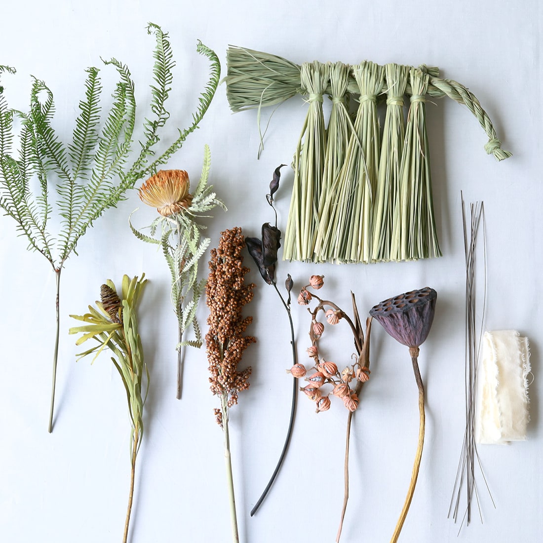 初めてでも気軽にドライフラワーのしめ縄作りをお楽しみいただけます。
