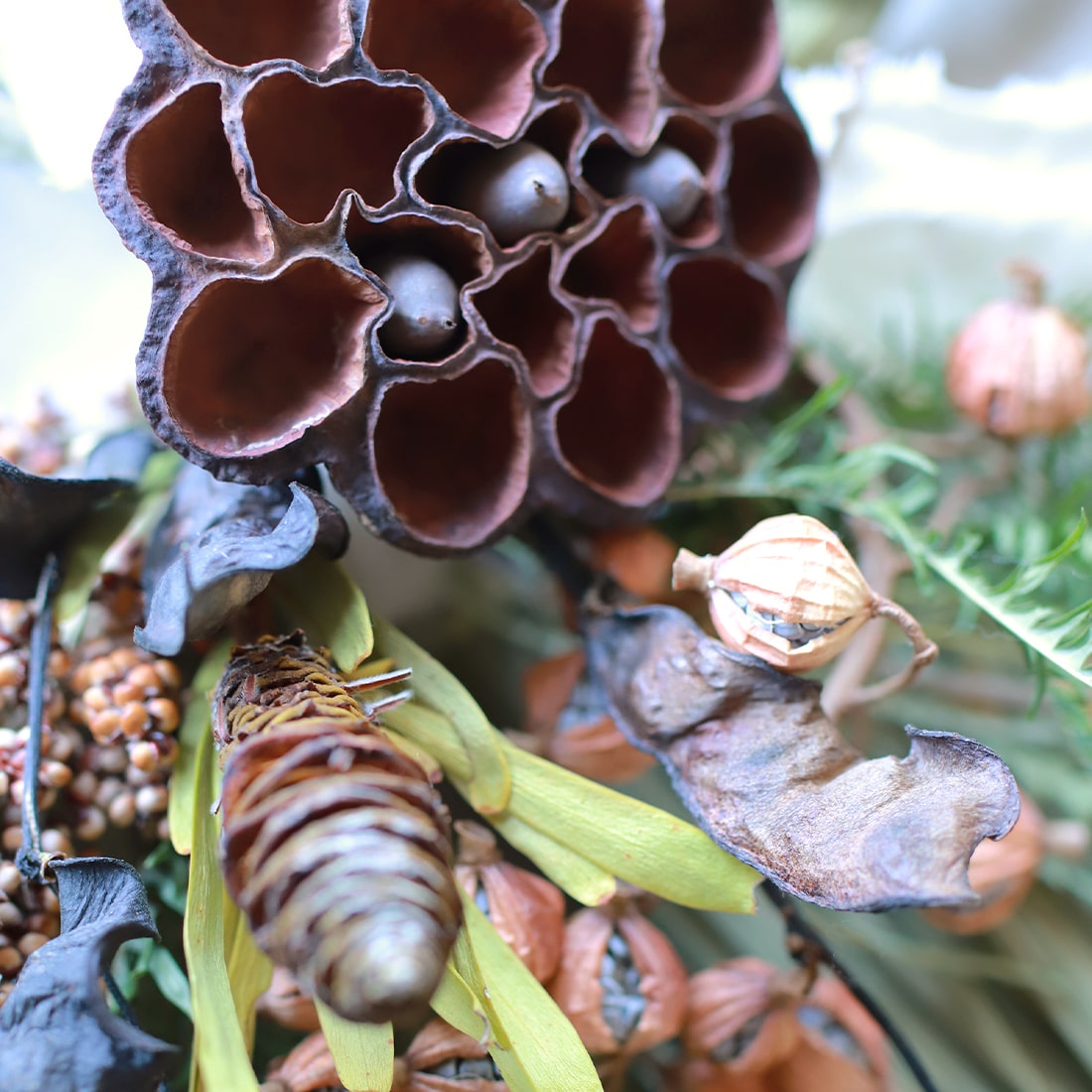 クリスマスの商品などにも実はけっこう黒っぽいドライフラワーが入っているので、気になる方は改めてご覧になってみてくださいね。