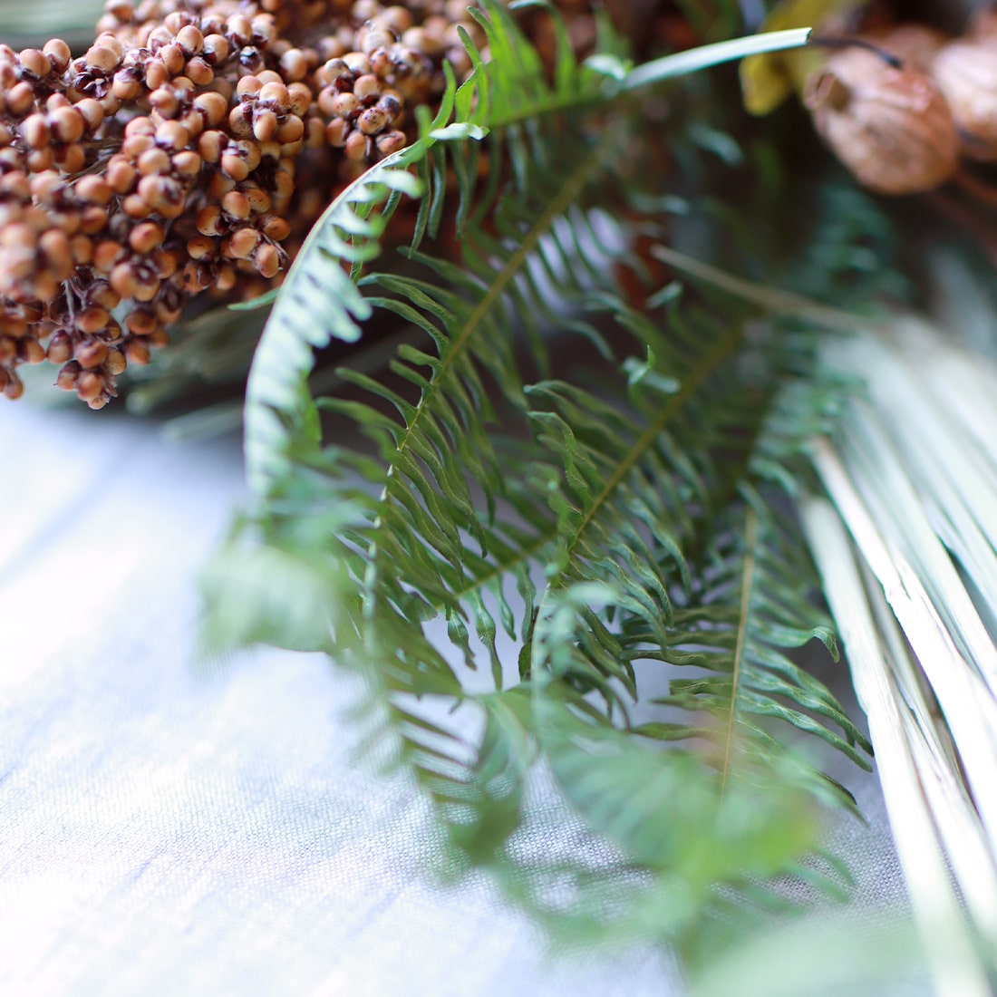 シックな色味のドリコスとハスで、ぴりっとした冬の空気感も表現しました。