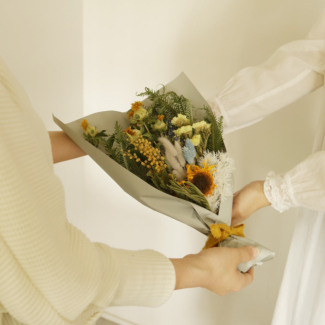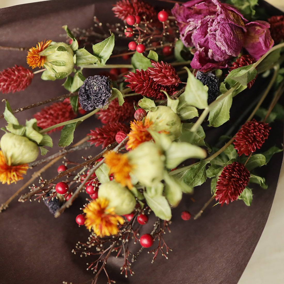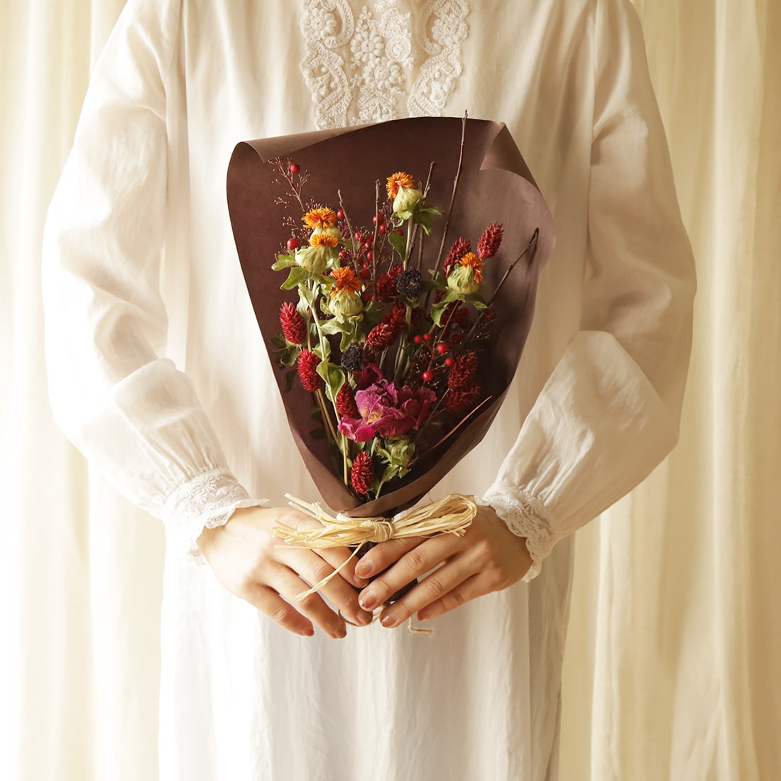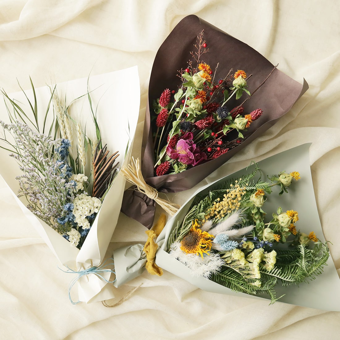 3つのテーマに合わせて、フローリストが季節のドライボタニカルを選び、束ねます。