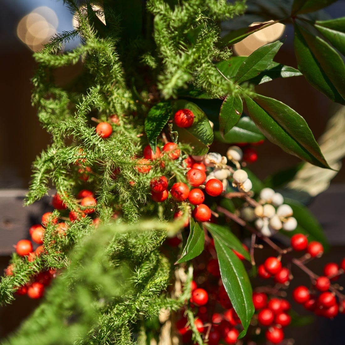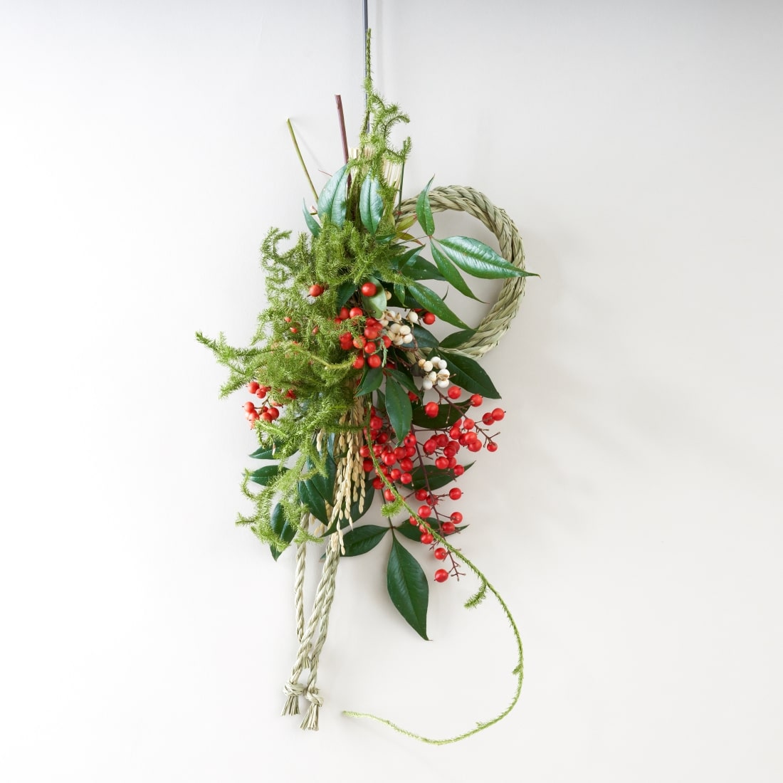 あたらしい気持ちで新年を迎えるのにぴったりな、あでやかなカラーのお正月飾り。縁起の良いとされる南天・ヒカゲノカズラをたっぷりとあしらいました。