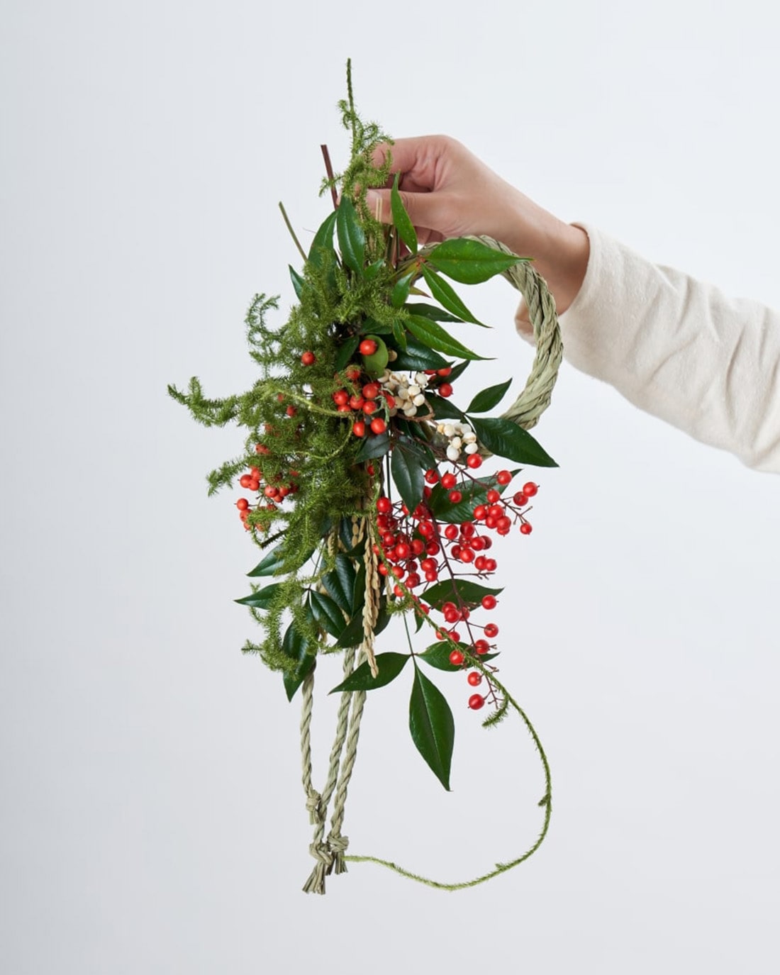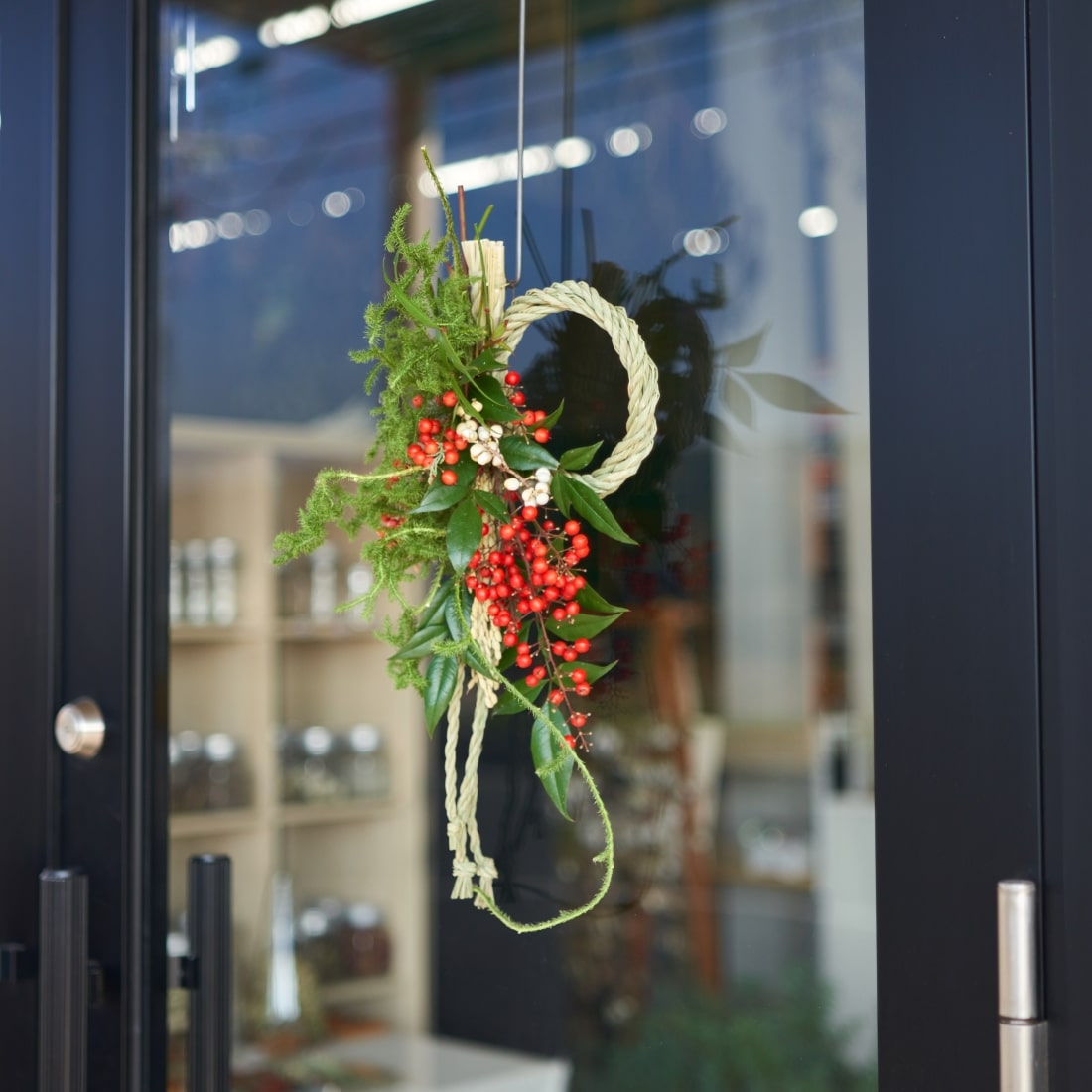 神様をお迎えしやすく、悪いものを家に入れないという2つの意味が込められているしめ縄に、赤い実を合わせたお正月飾り。