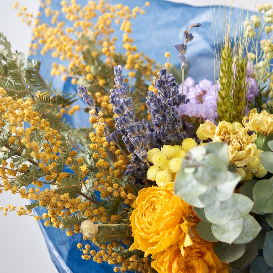 ミモザ、ラナンキュラス、ヘリクリサム。