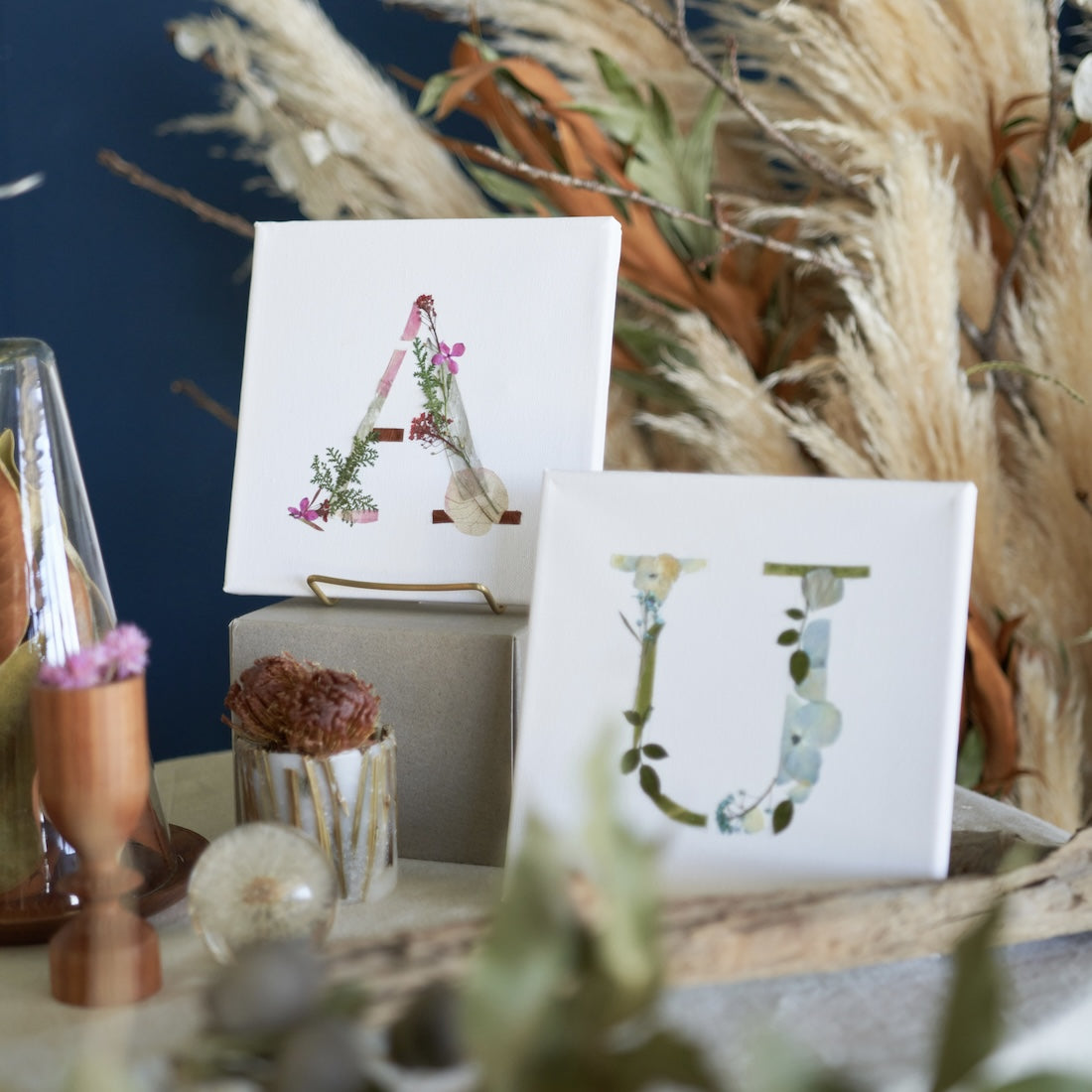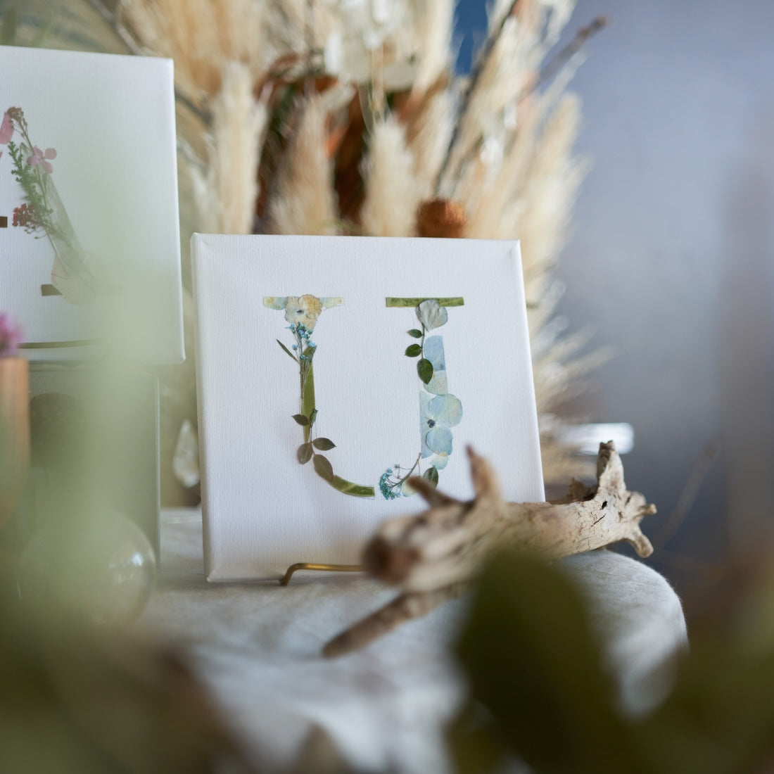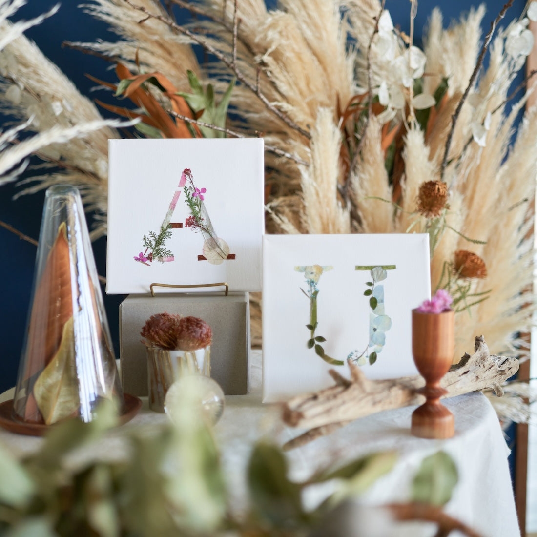 結婚式のウェルカムスペースに、自分とパートナーのイニシャルを並べても、きっと素敵。色とりどりのドライボタニカルが、ふたりのこれからを祝福します。