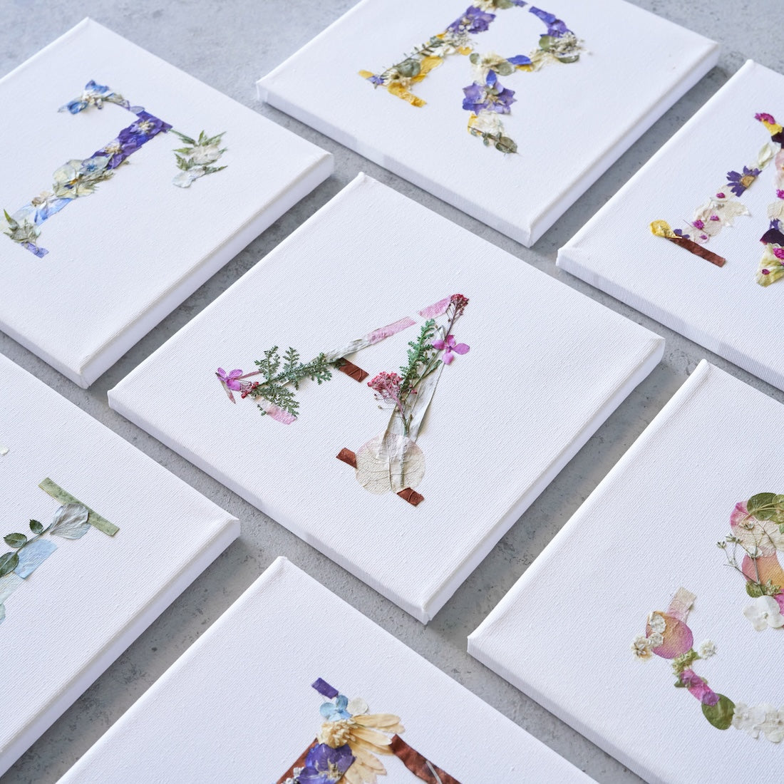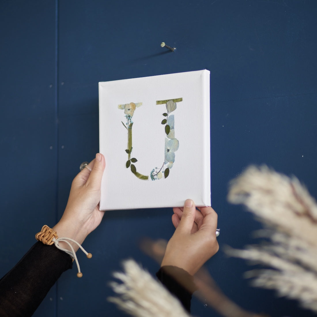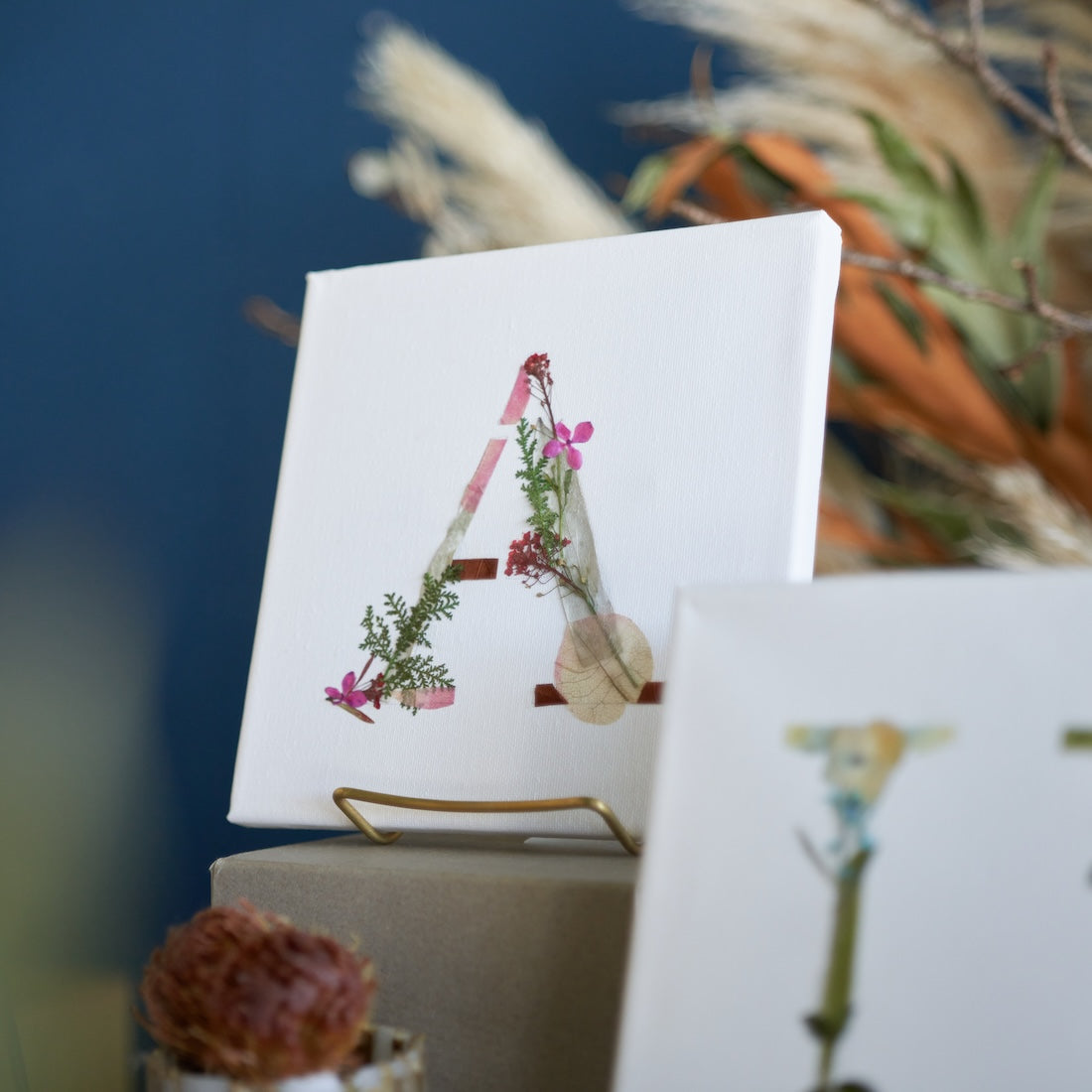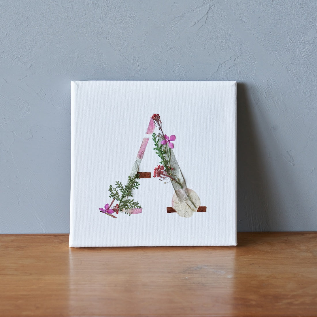 アルファベット一文字のシンプルなデザインだけど、色々な種類のドライボタニカルを組み合わせているから、とっても表情ゆたか。