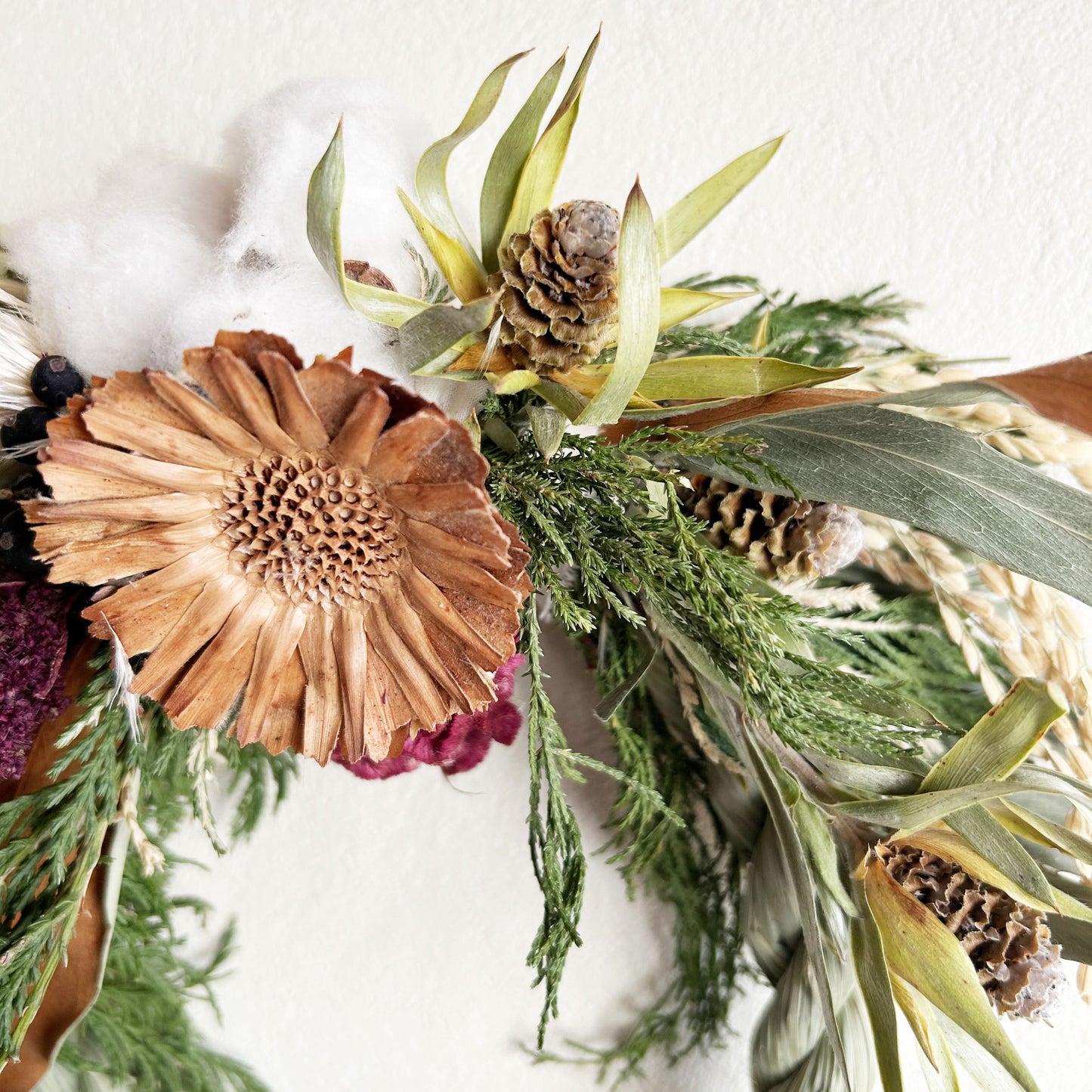 アンティークカラーのドライフラワーをあしらったお正月飾りです。2点のみの限定販売です。