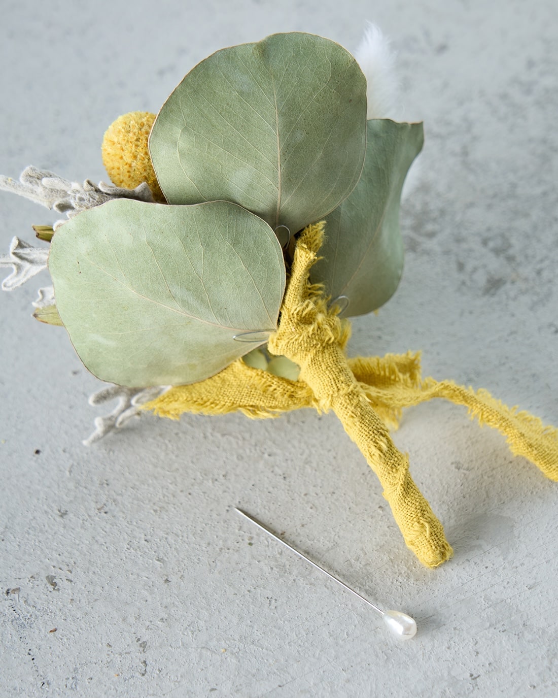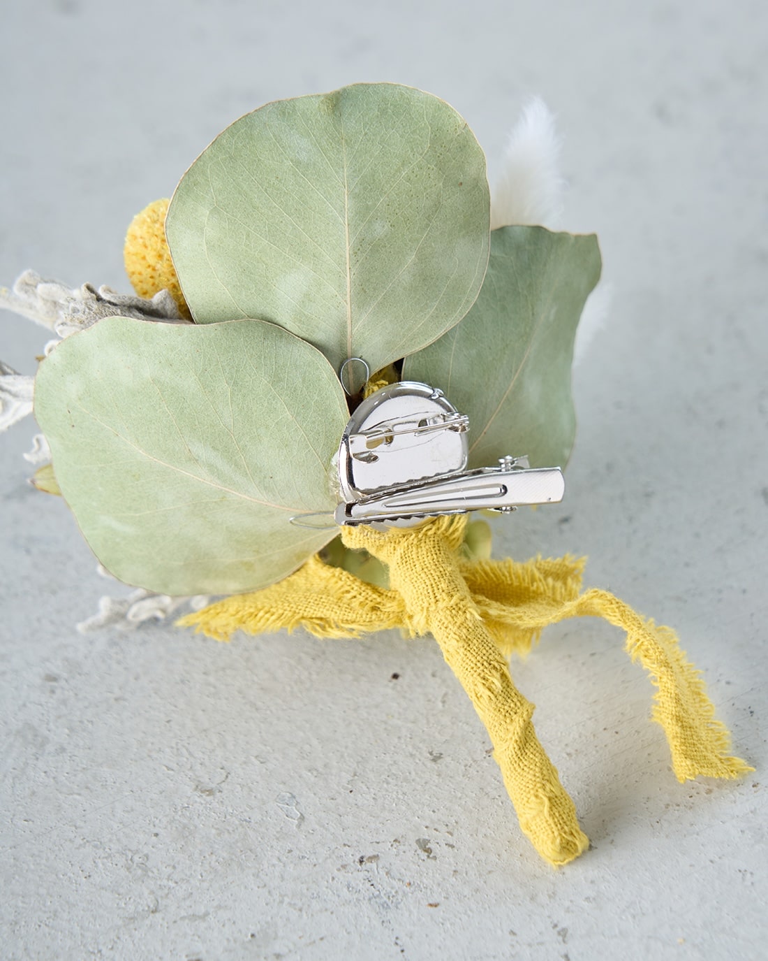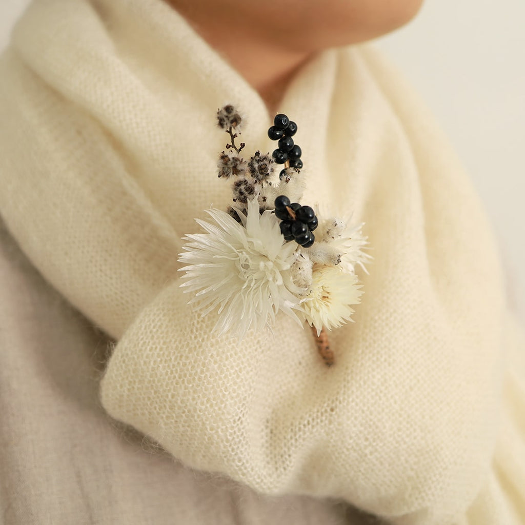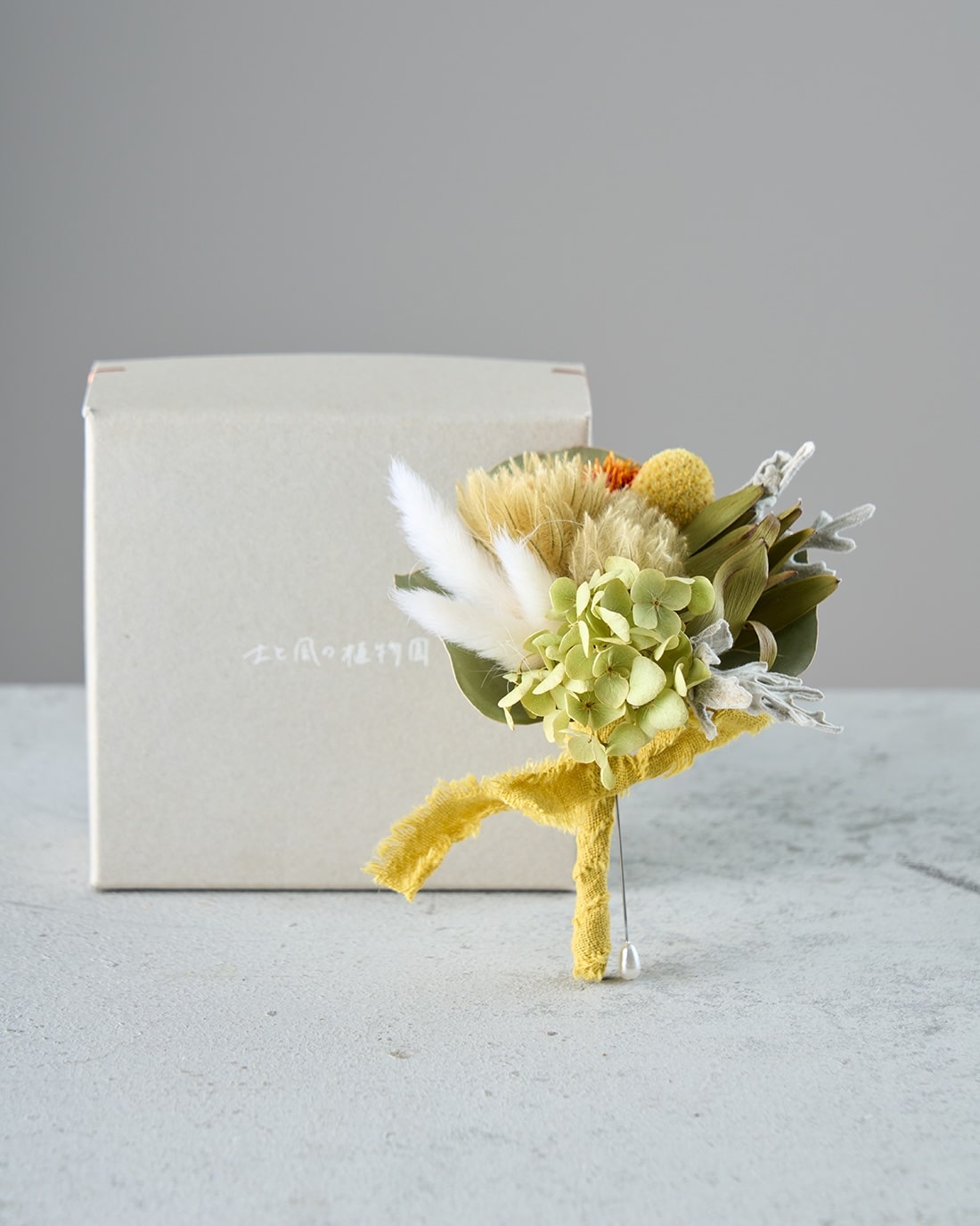 フローリストが季節のドライフラワーで作る、オートクチュールのコサージュ・ブートニアです。結婚式など、さまざまなお祝いごとにぴったり。