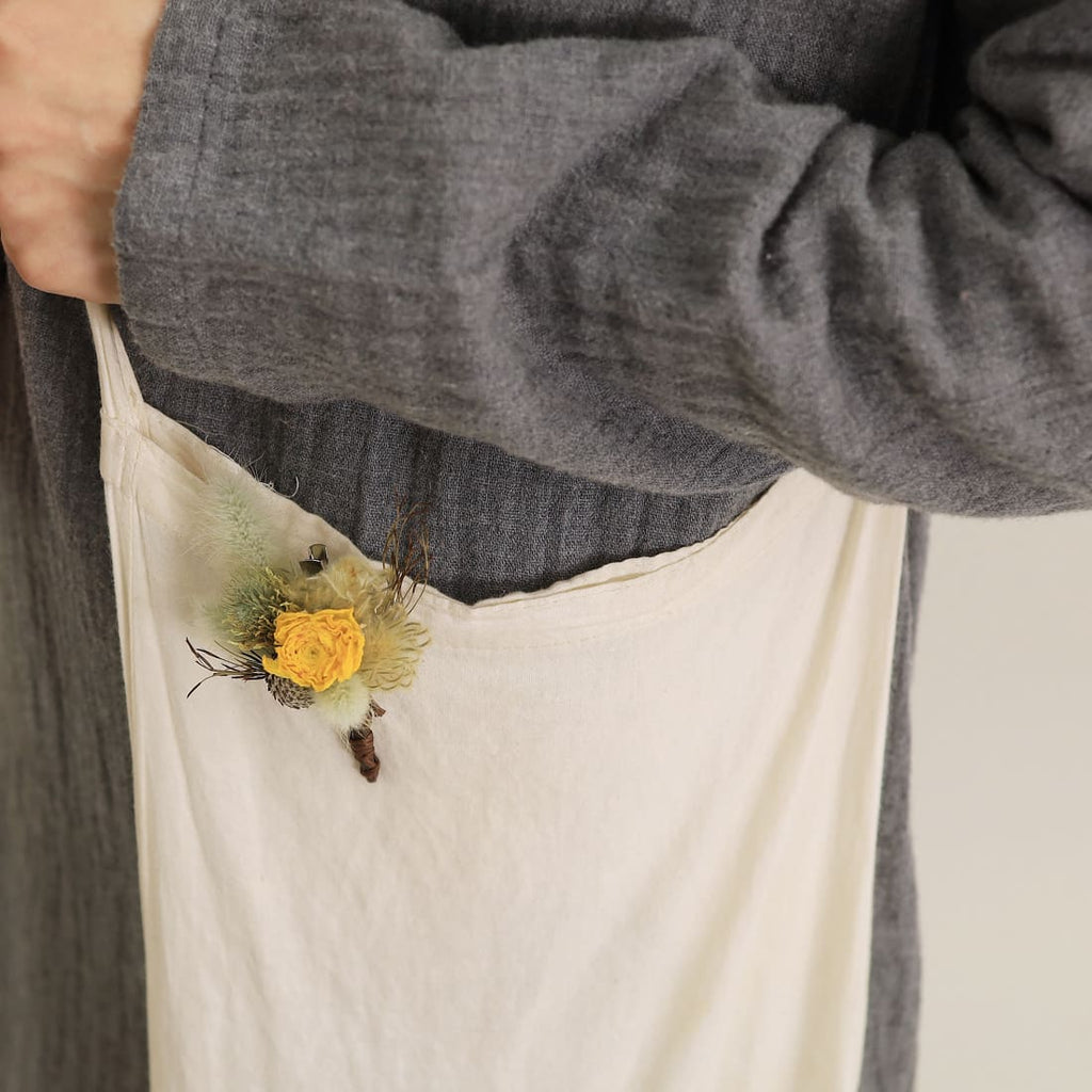 ブートニアは、主に結婚式で新郎が身に付けることを想定したアイテムです。コサージュは、胸元だけでなく、髪やバッグ、ストールなどさまざまな場所に付けやすいのが魅力。用途に合わせてお選びください。色味や雰囲気、シルエットなど、なるべくご要望に沿うように心を込めてお作りします。