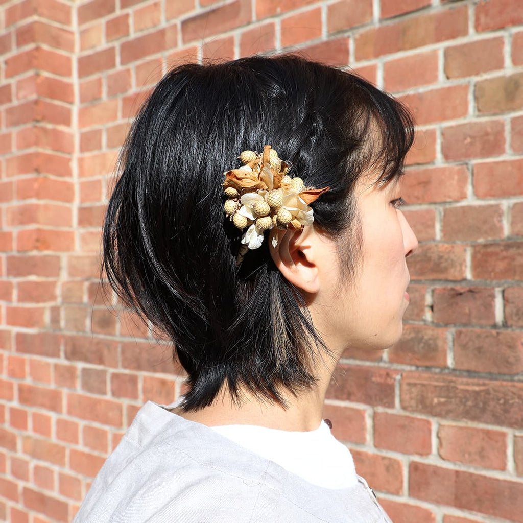 胸元だけでなく、髪やバッグ、ストールなどさまざまな場所に付けやすいのが魅力です。
