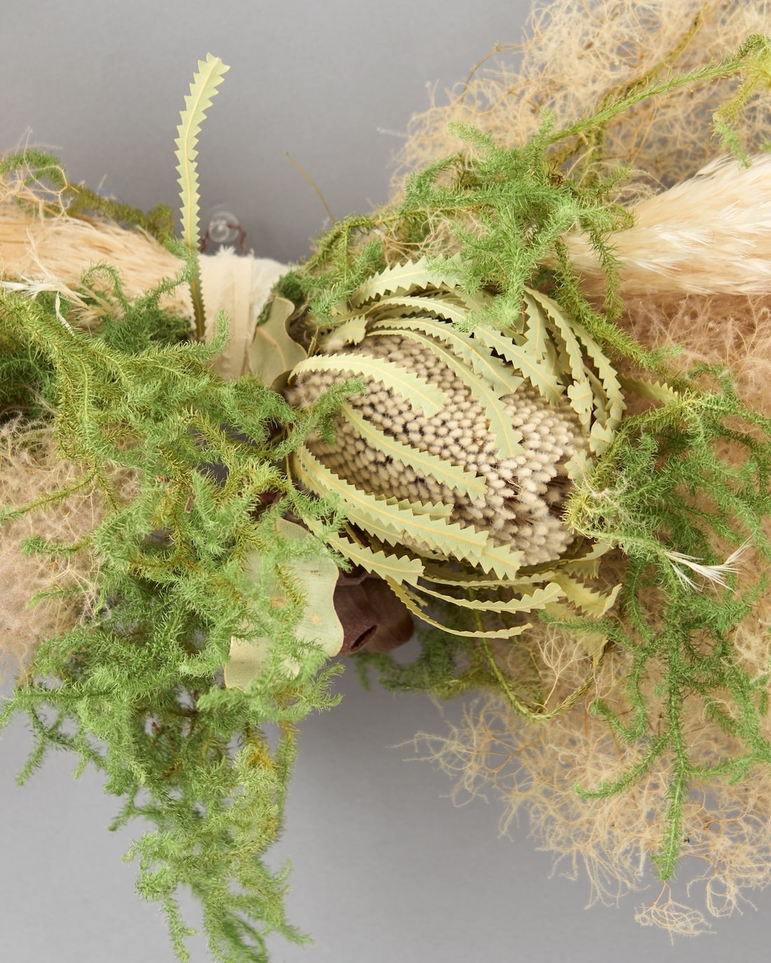 中心には、バンクシア・フーケリアーナとトランペットフラワーを。