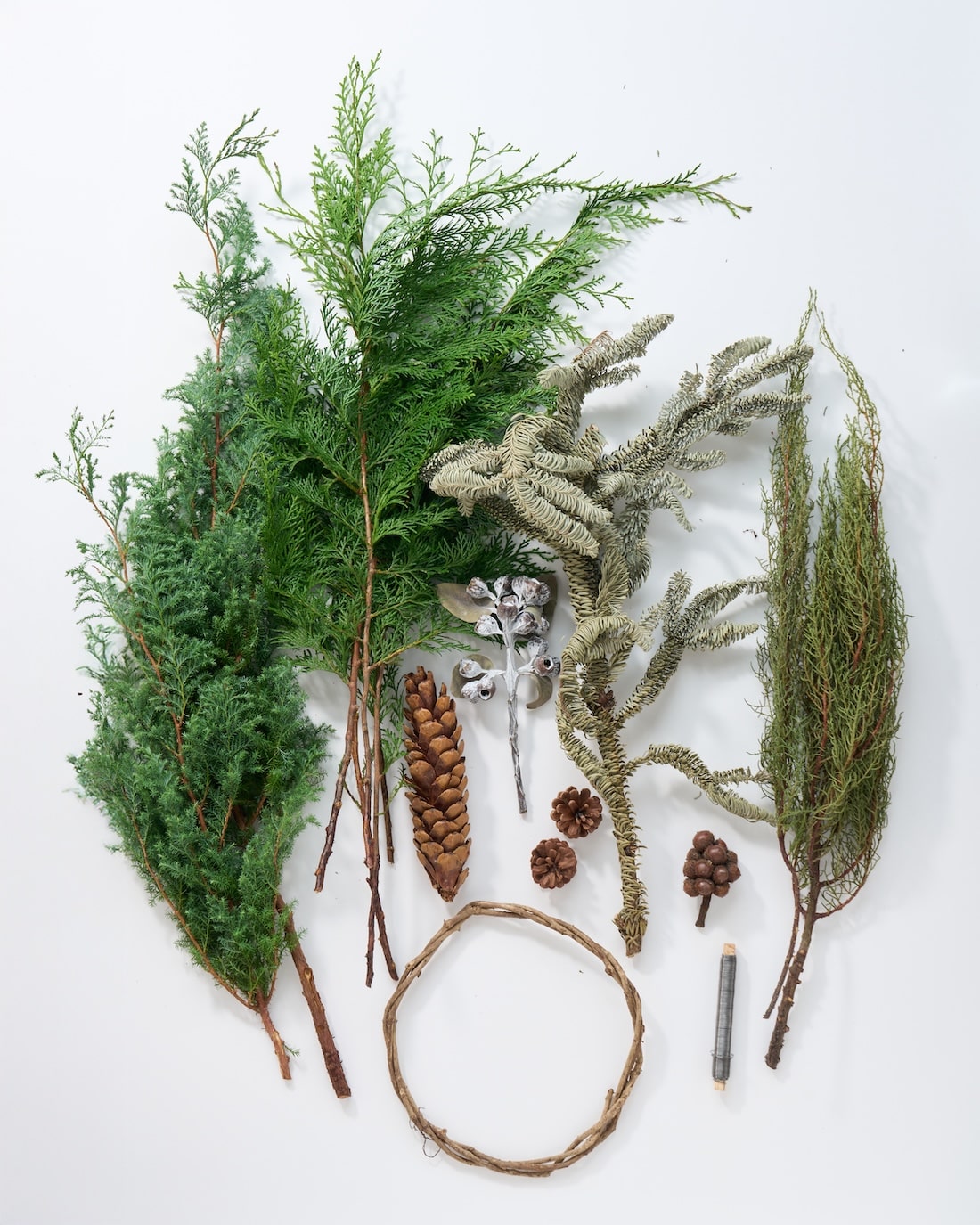 ナチュラルな実ものや、うっすら雪をまとったようなユーカリテトラゴナを添えました。