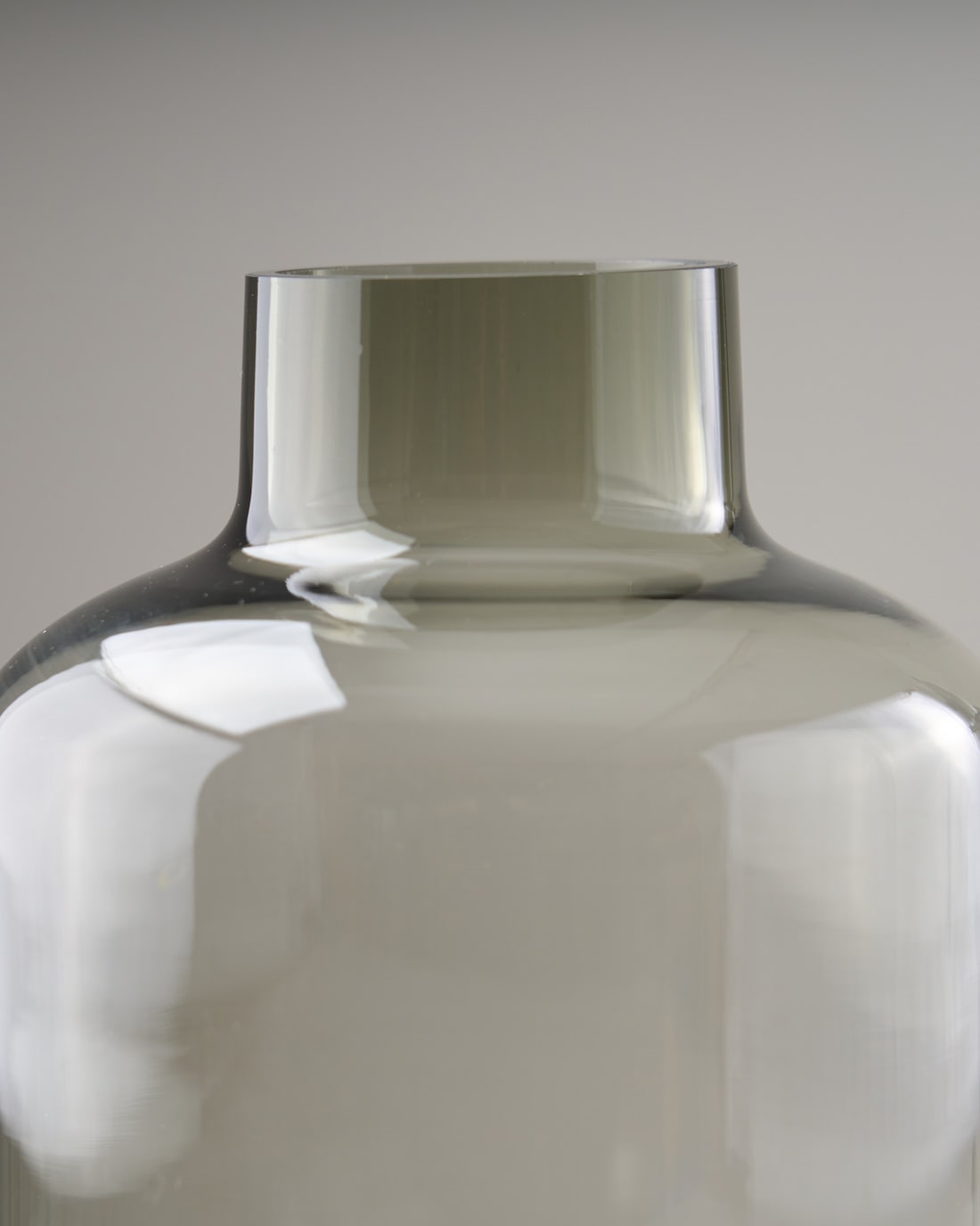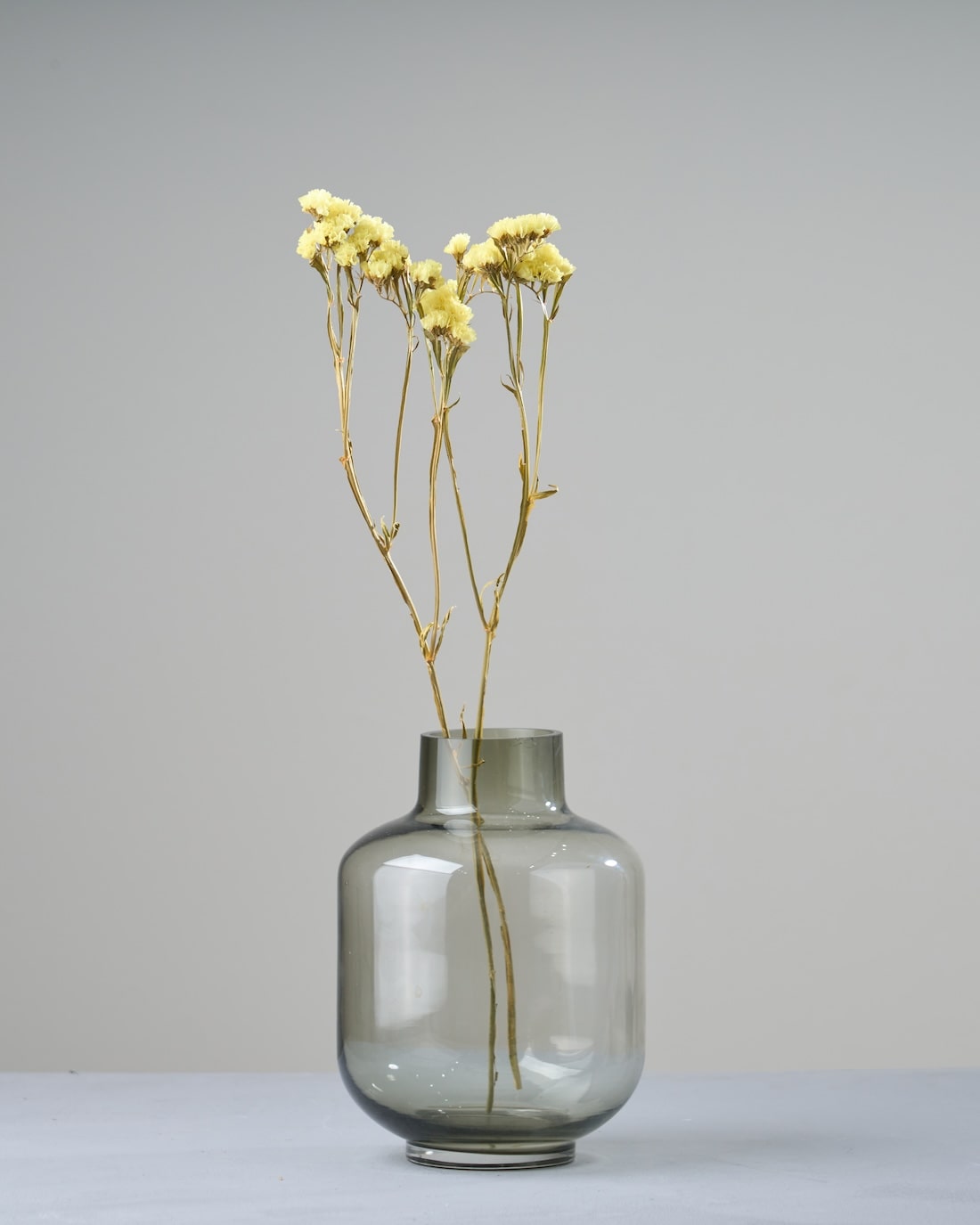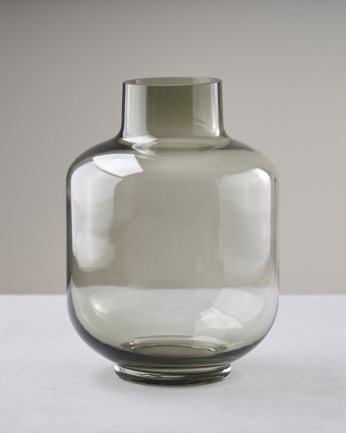 アンニュイカラーが人気の、大きなガラスベース。モダンな雰囲気だけど、丸みのあるフォルムで優しげな佇まいに。