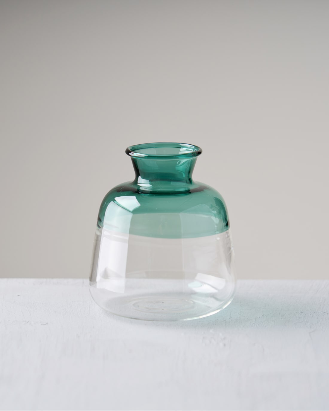 グリーンとクリアガラスのツートーンフラワーベースです