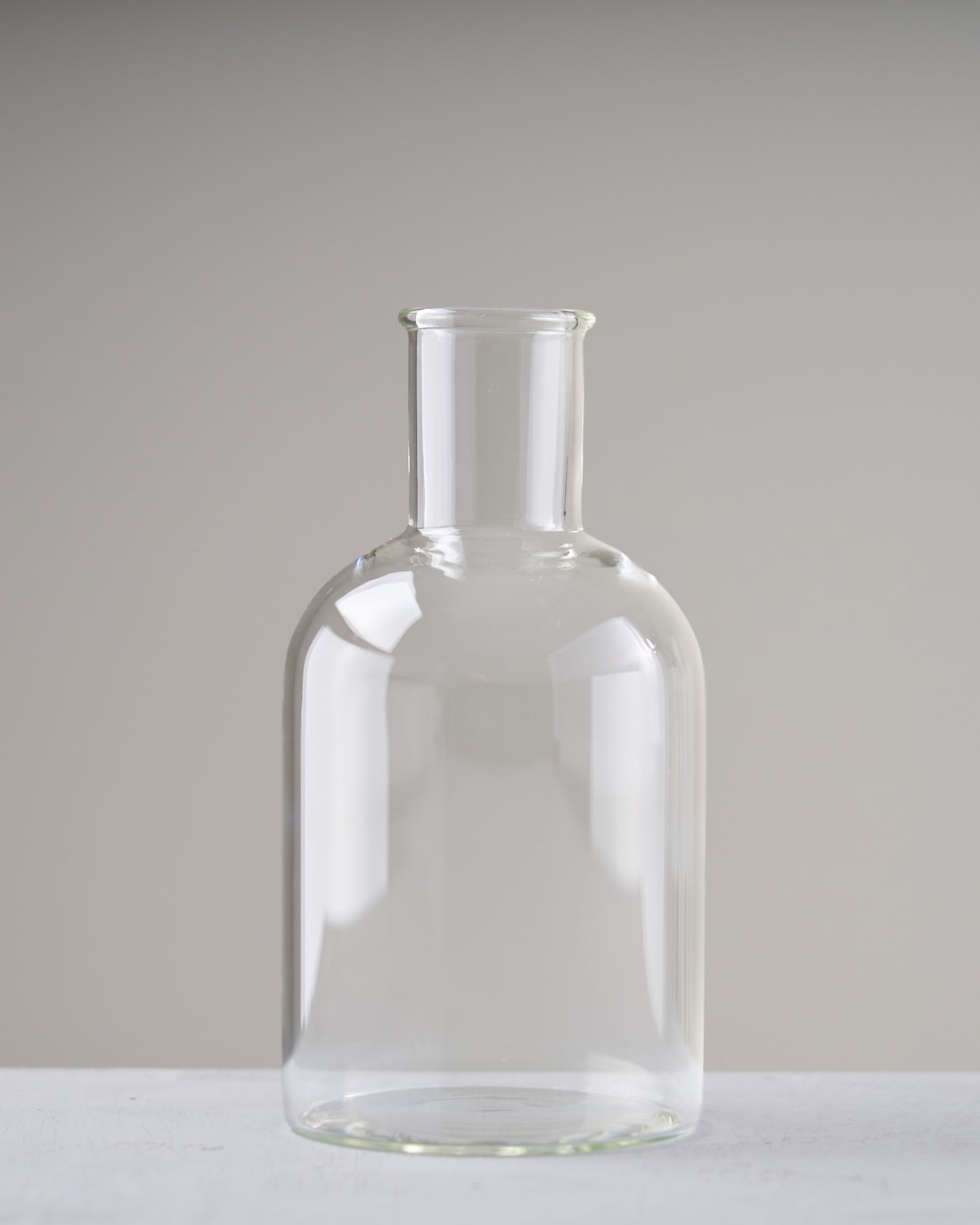薬瓶のような懐かしいフォルムのフラワーベースです