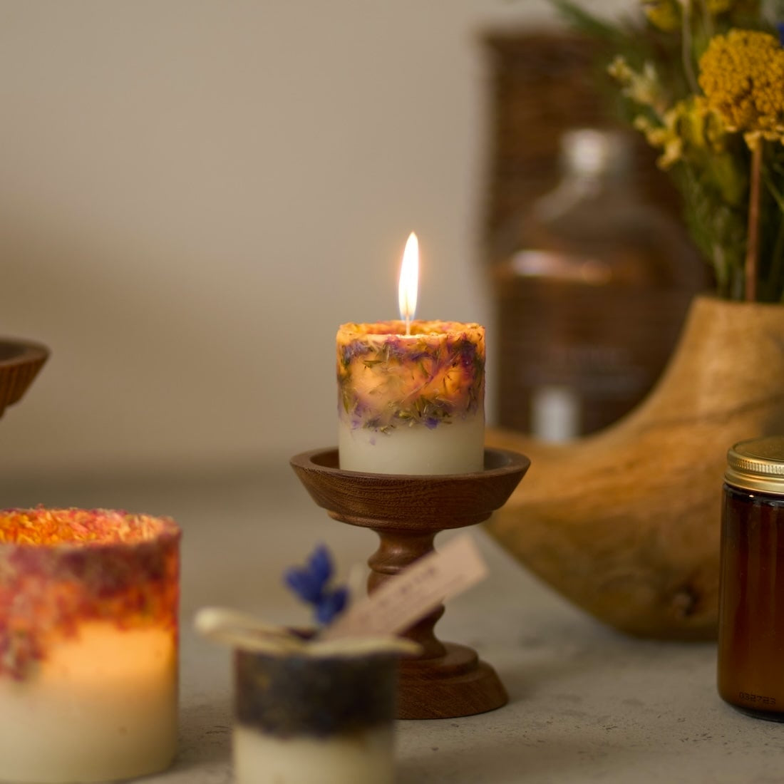 ただのキャンドルではなく、ドライフラワーを飾る器としての役割も果たしてくれます。